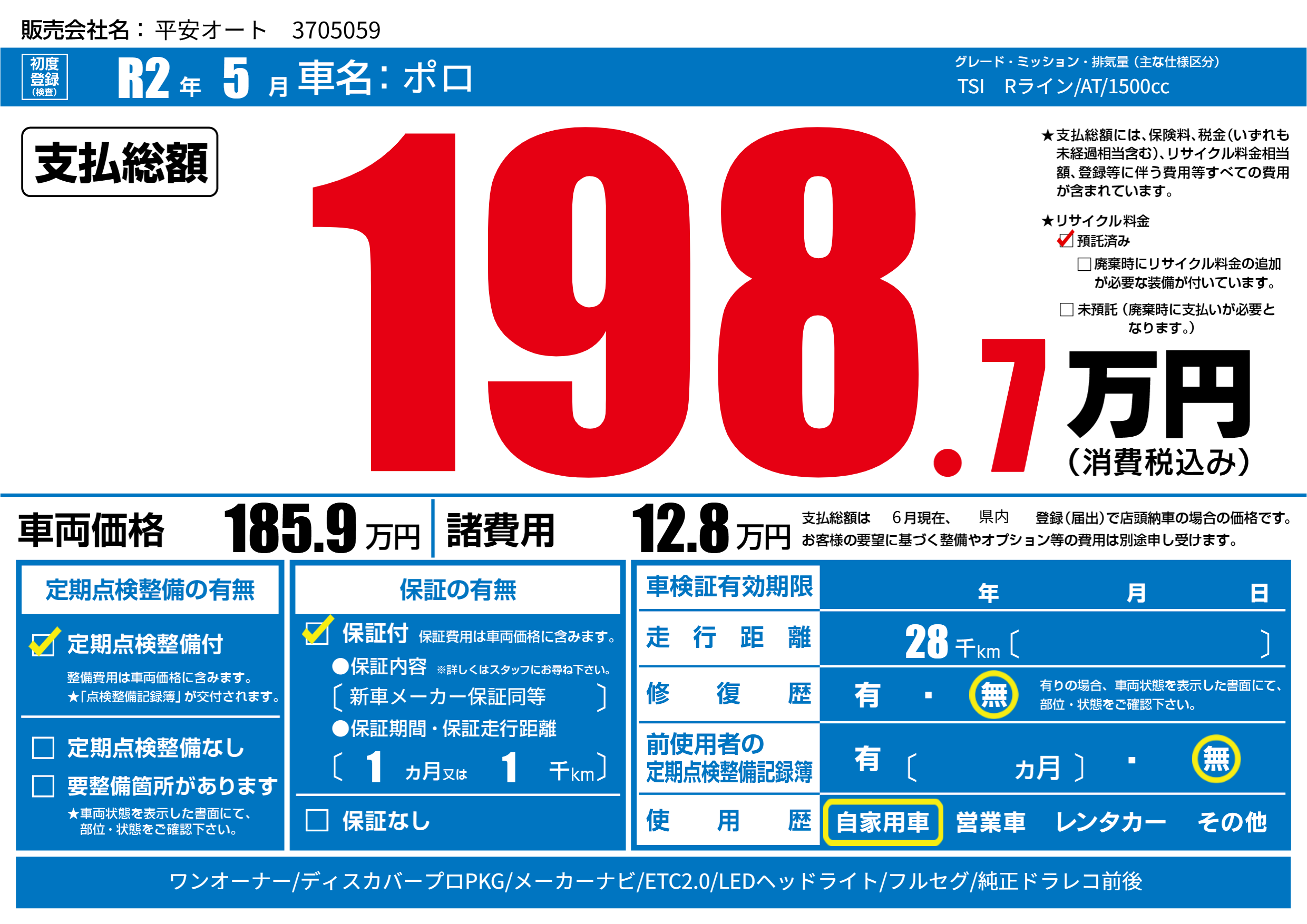 | 車名 | ポロ | グレード ミッション 排気量 |