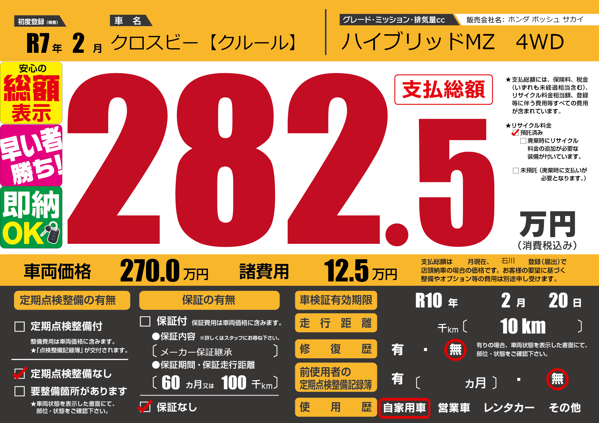 | 走行キロ | - | 初年度登録 | R7年2月 |