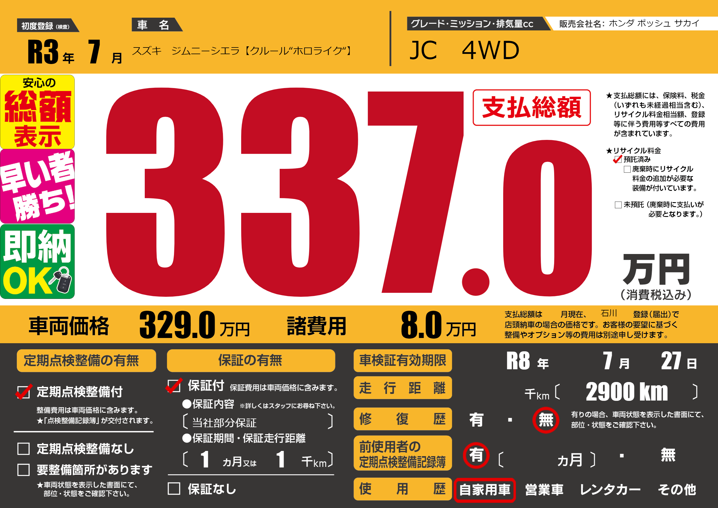 | 走行キロ | - | 初年度登録 | R3年7月 |