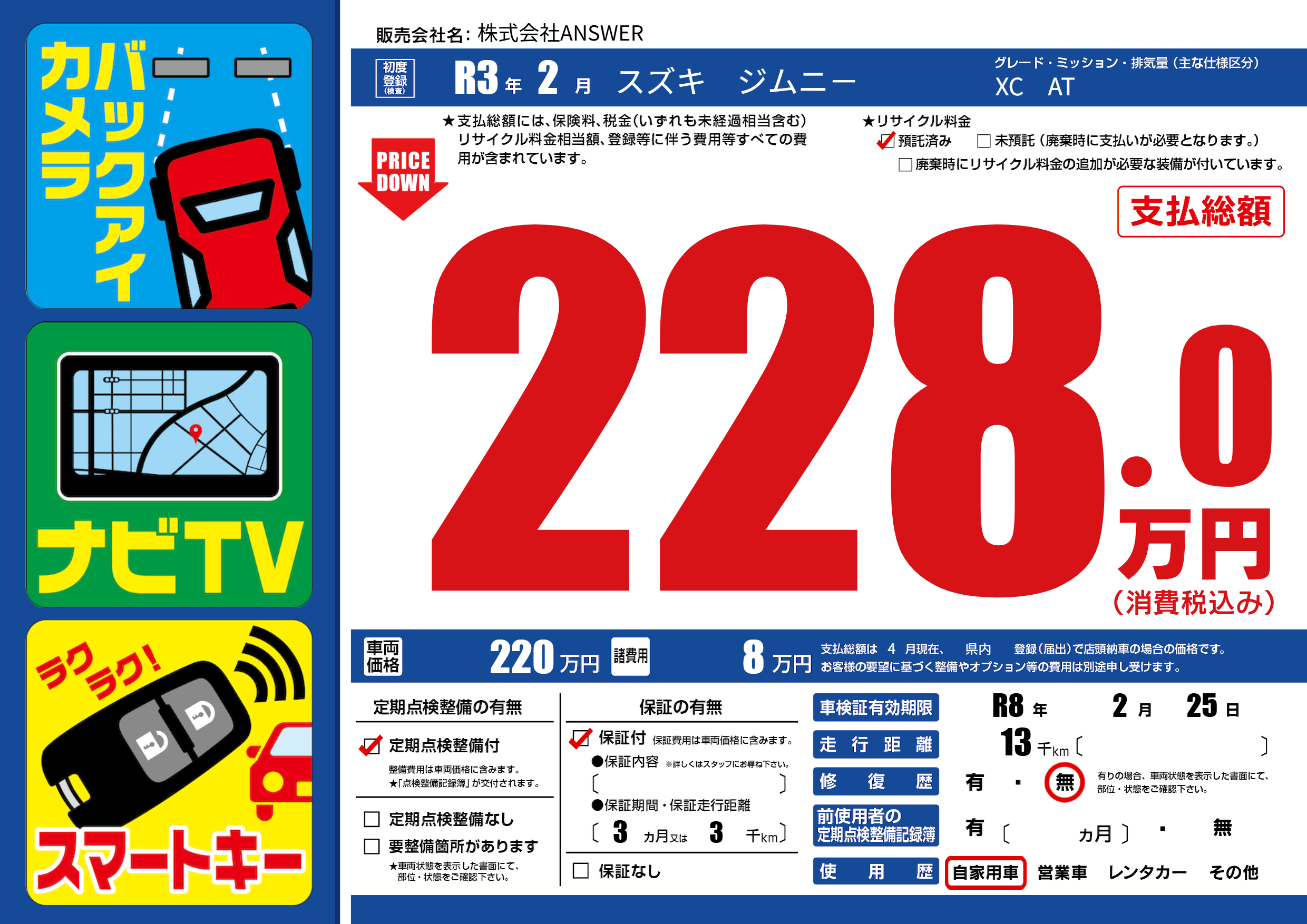 なし | 車検制限 | R8年2月25月 |