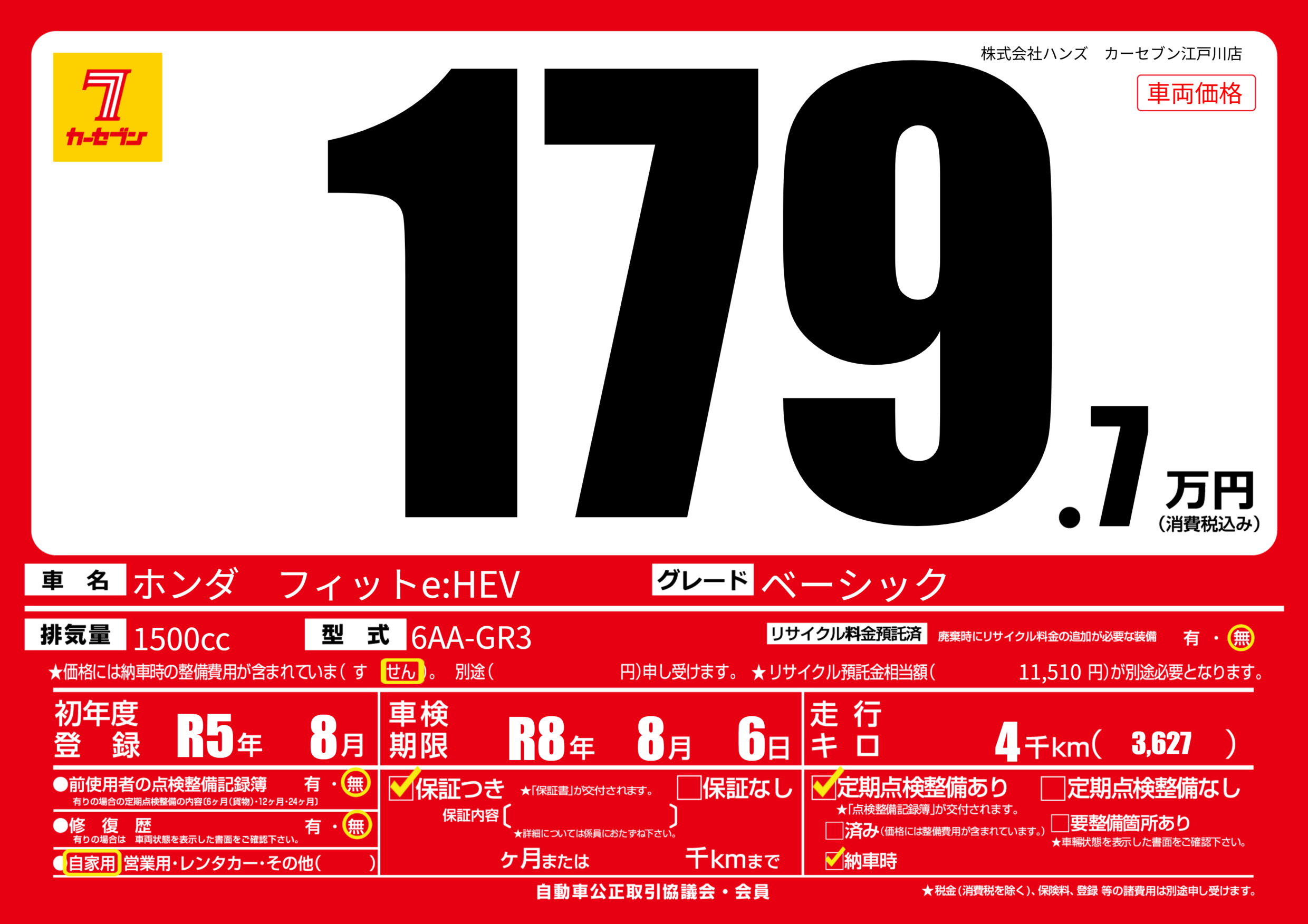 なし | 車検制限 | R8年8月6月 |