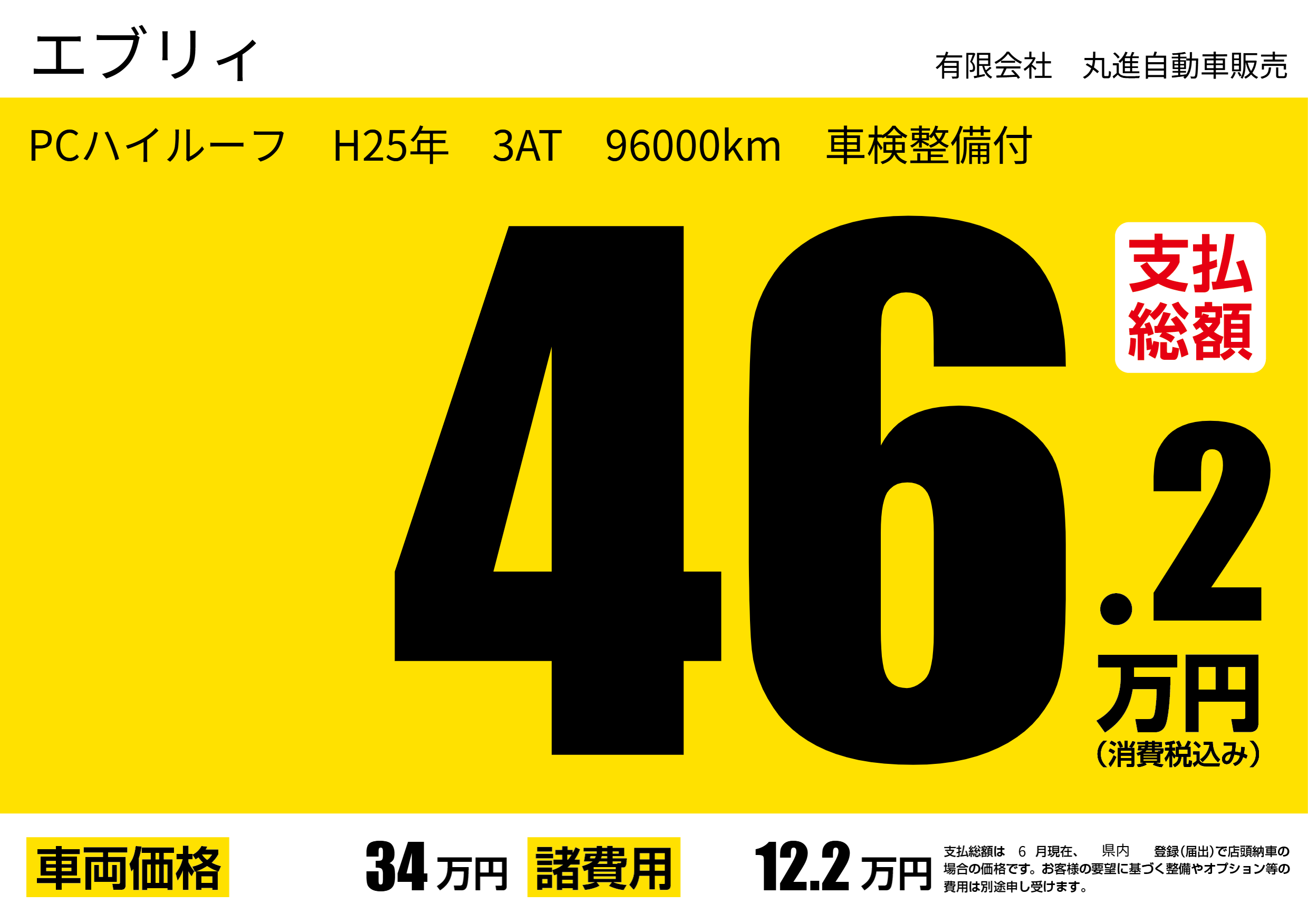 PCハイルーフ H25年 3AT 96000km 車検整備付 |