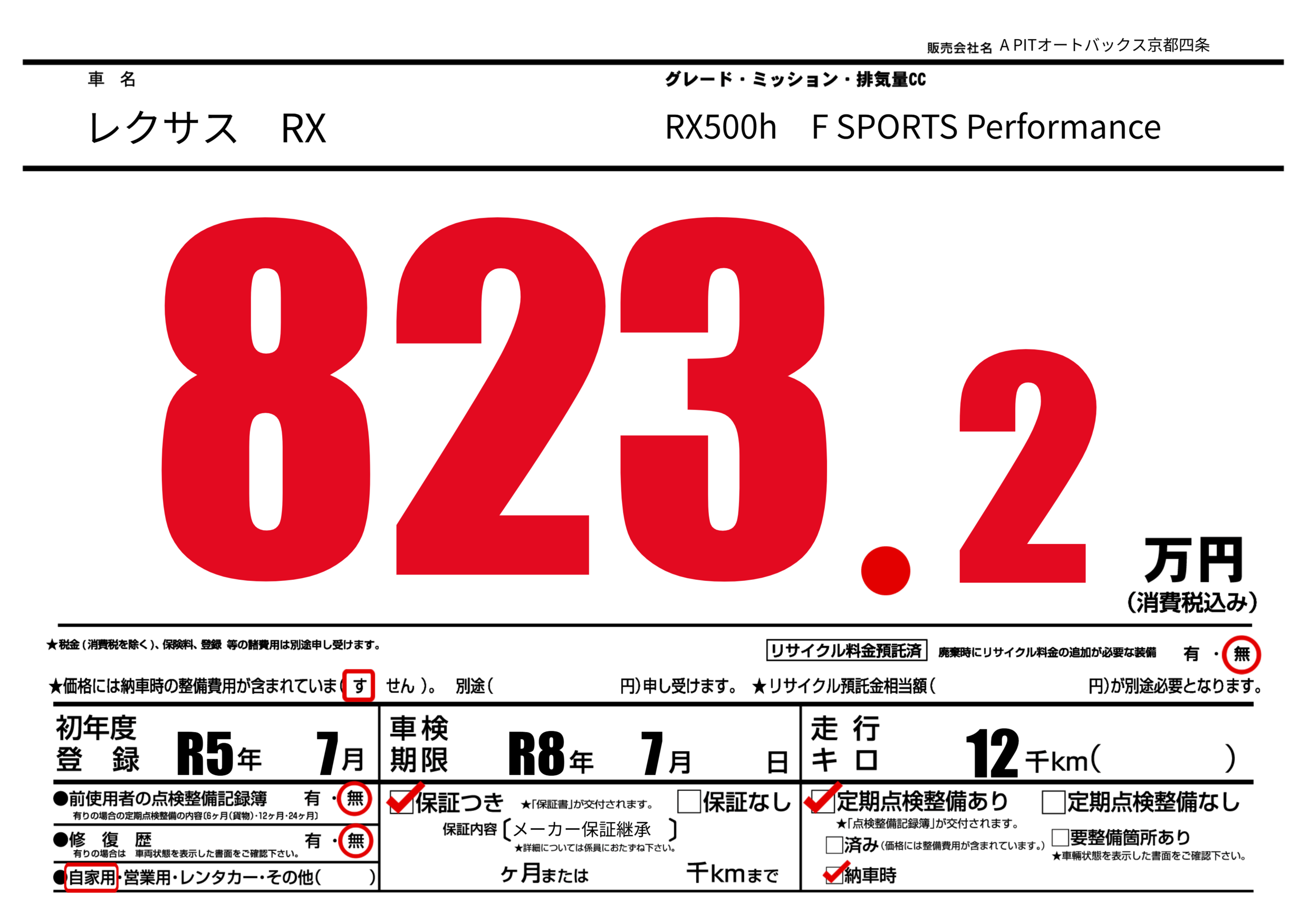| 車名 | レクサス RX | グレード ミッション 排気量 |