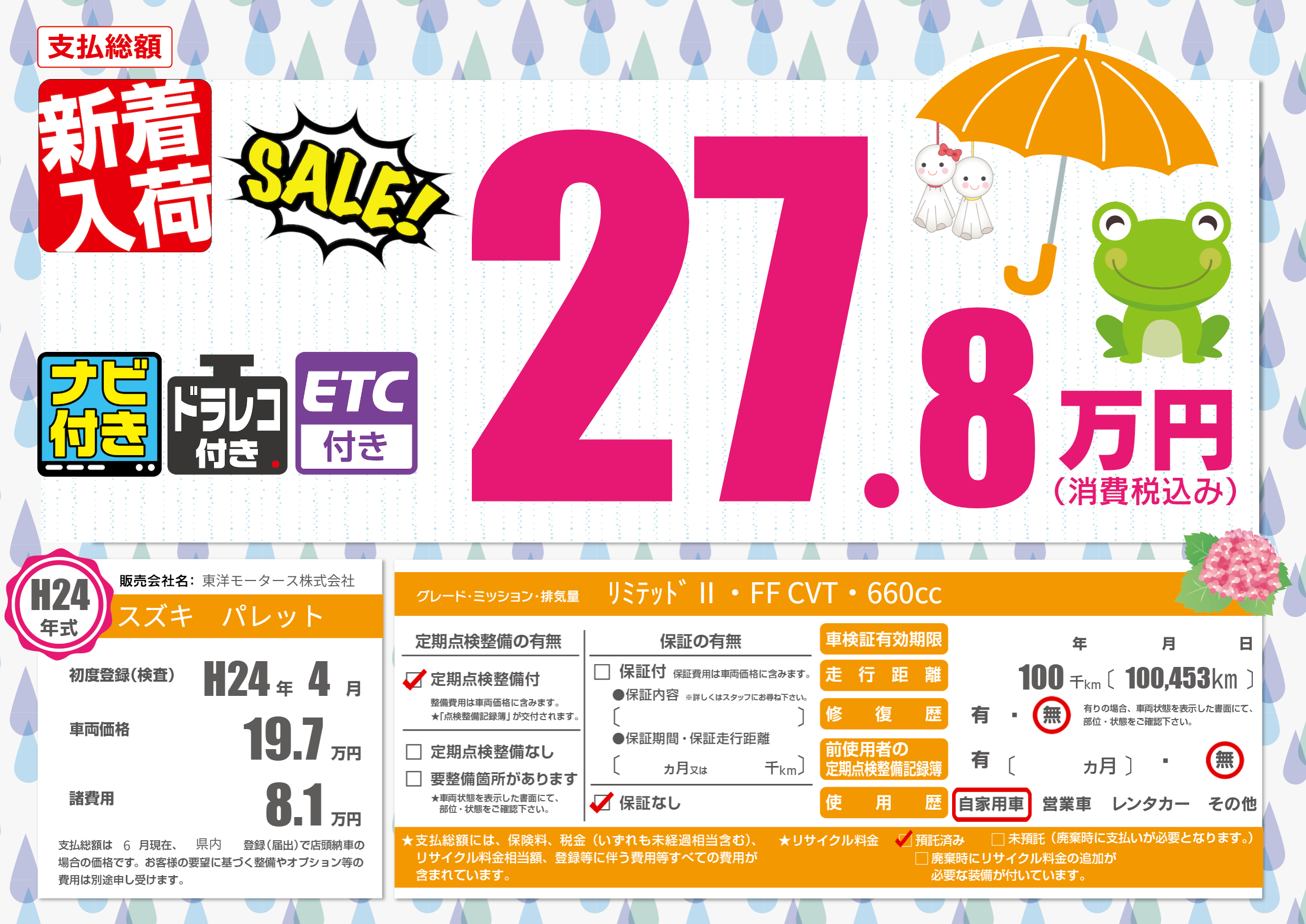 | 走行キロ | 10万km | 初年度登録 | H24年4月 |