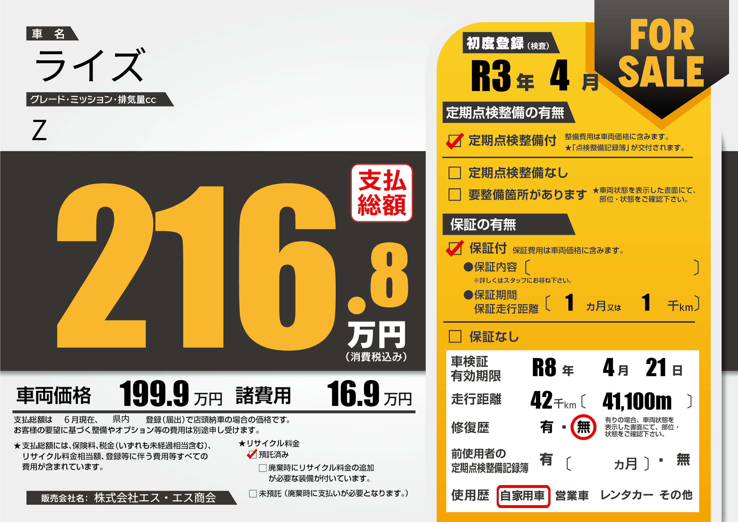 | 車検制限 | R8年 4月 21日 | ||