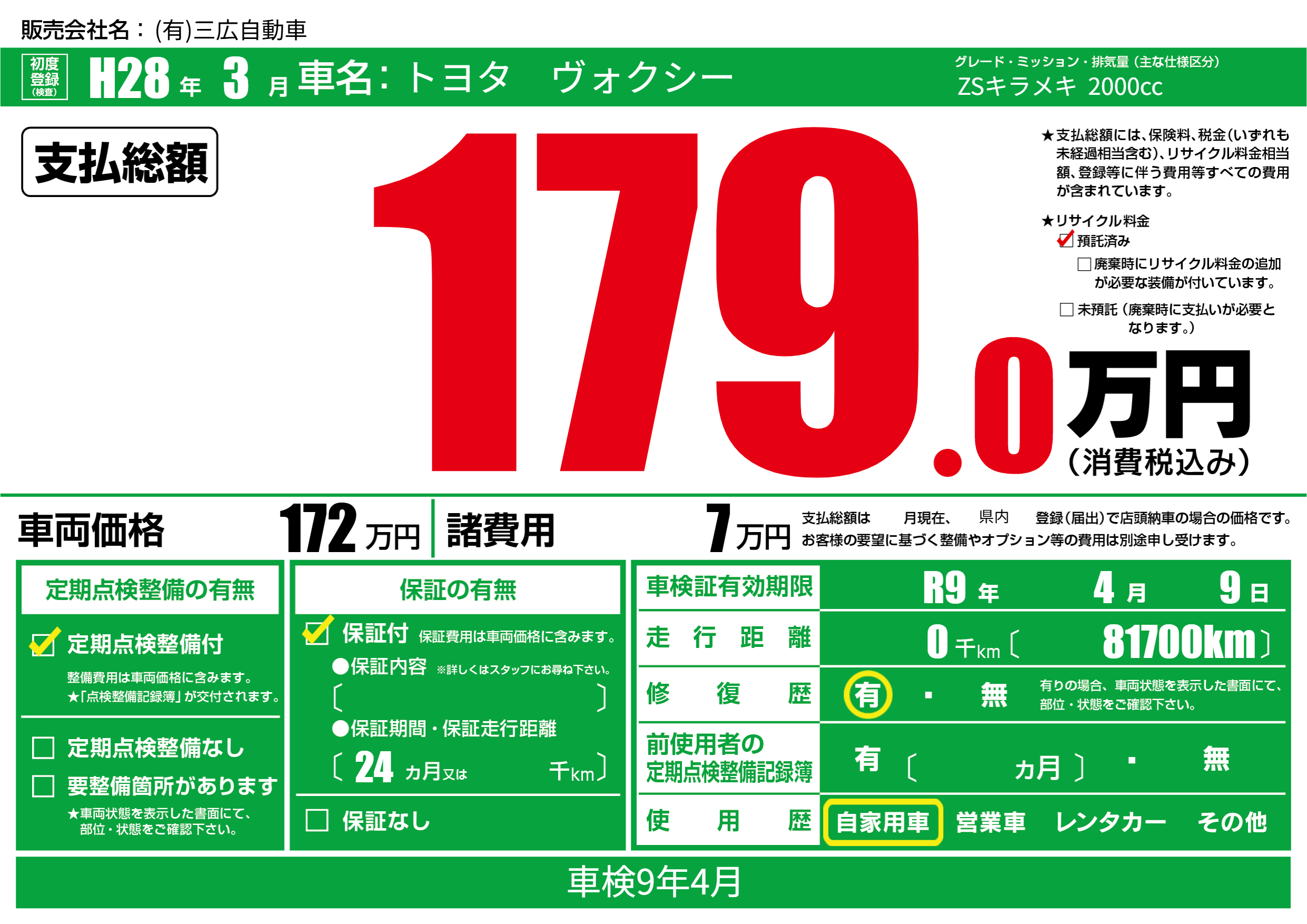 保証付き 保証内容(---) 24ヶ月または()千kmまで |