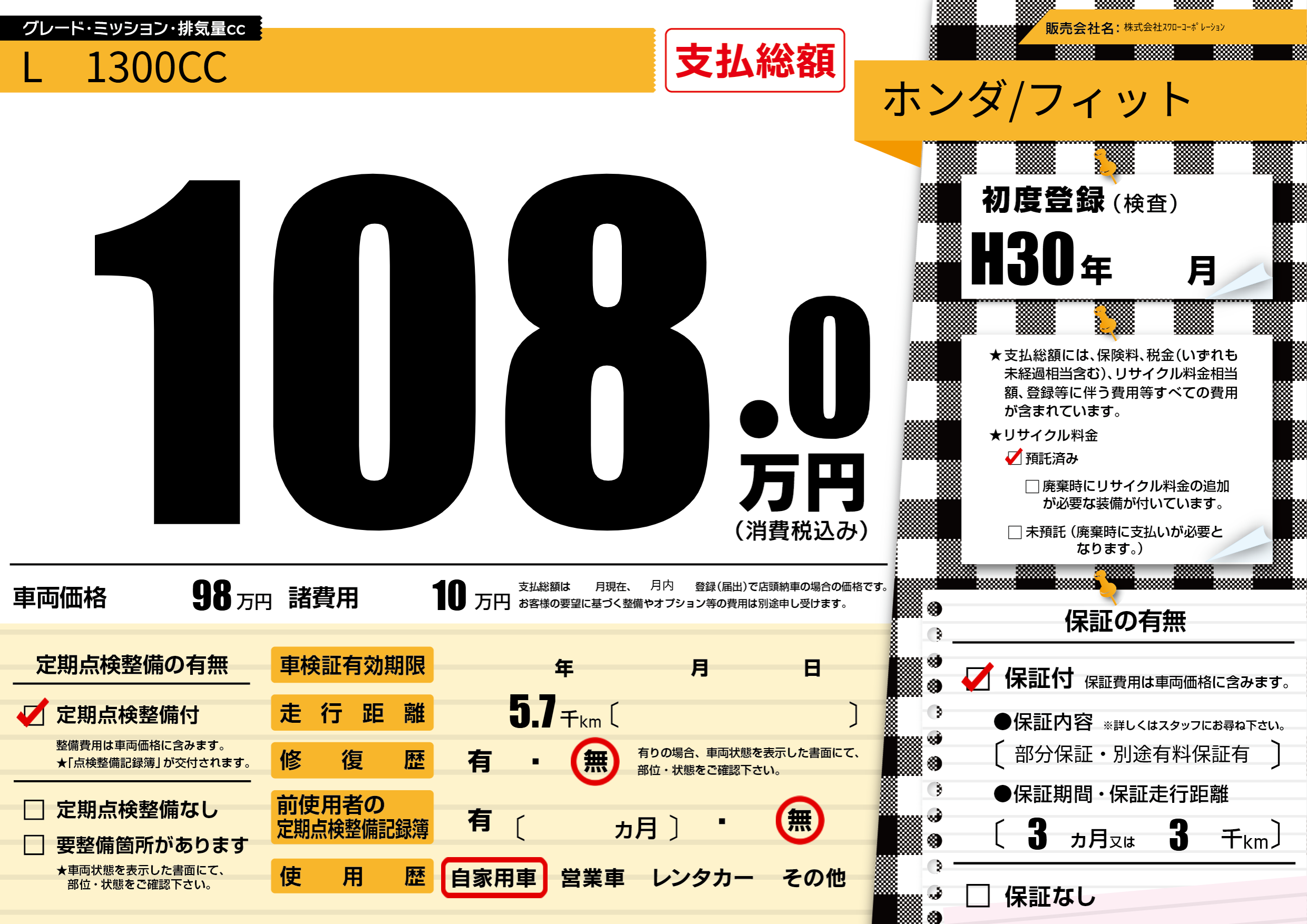 保証付き 保証内容(部分保証・別途有料保証有) 3ヶ月または(3)千kmまで |