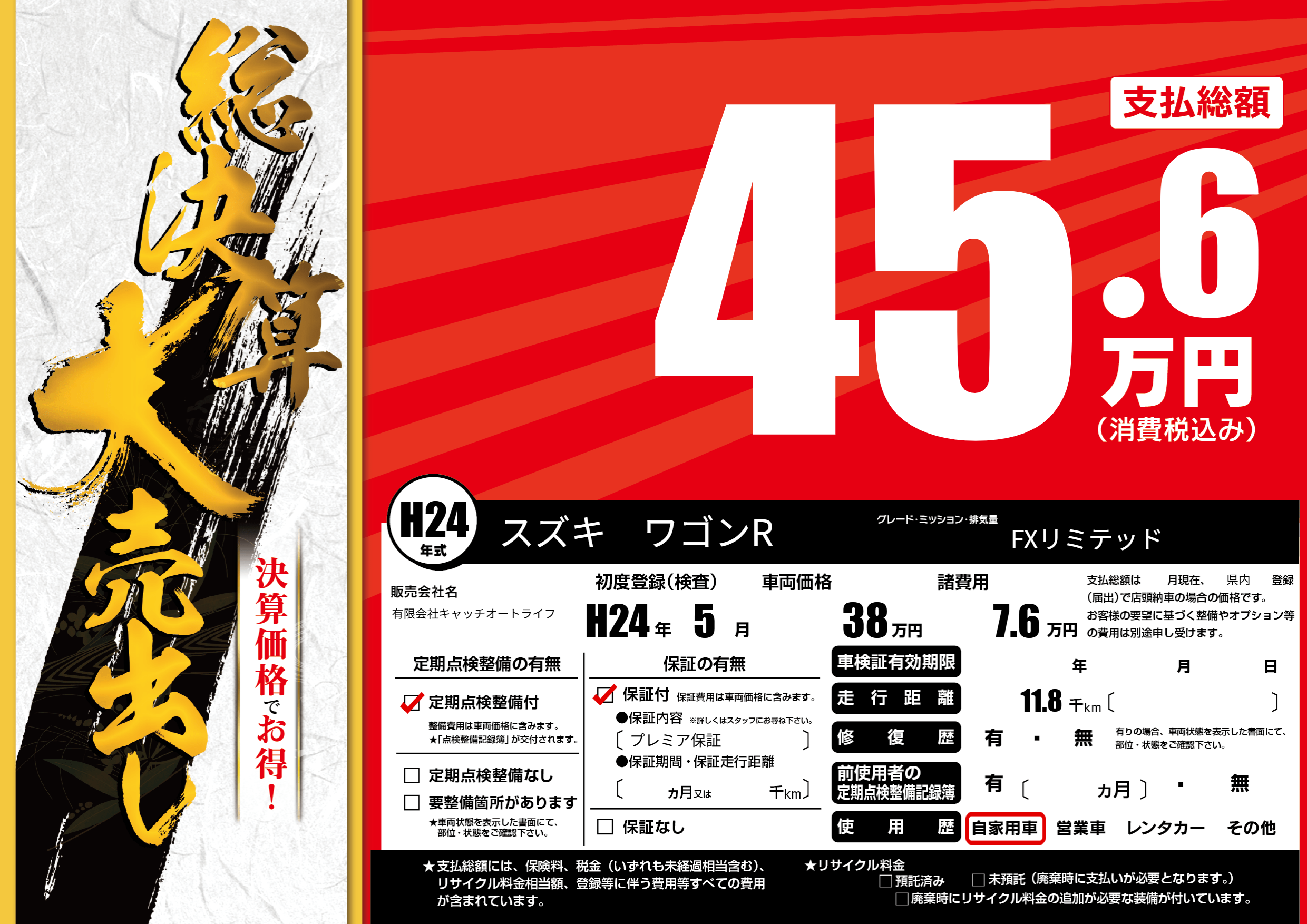 保証付き 保証内容(プレミア保証) ---ヶ月または()千kmまで |