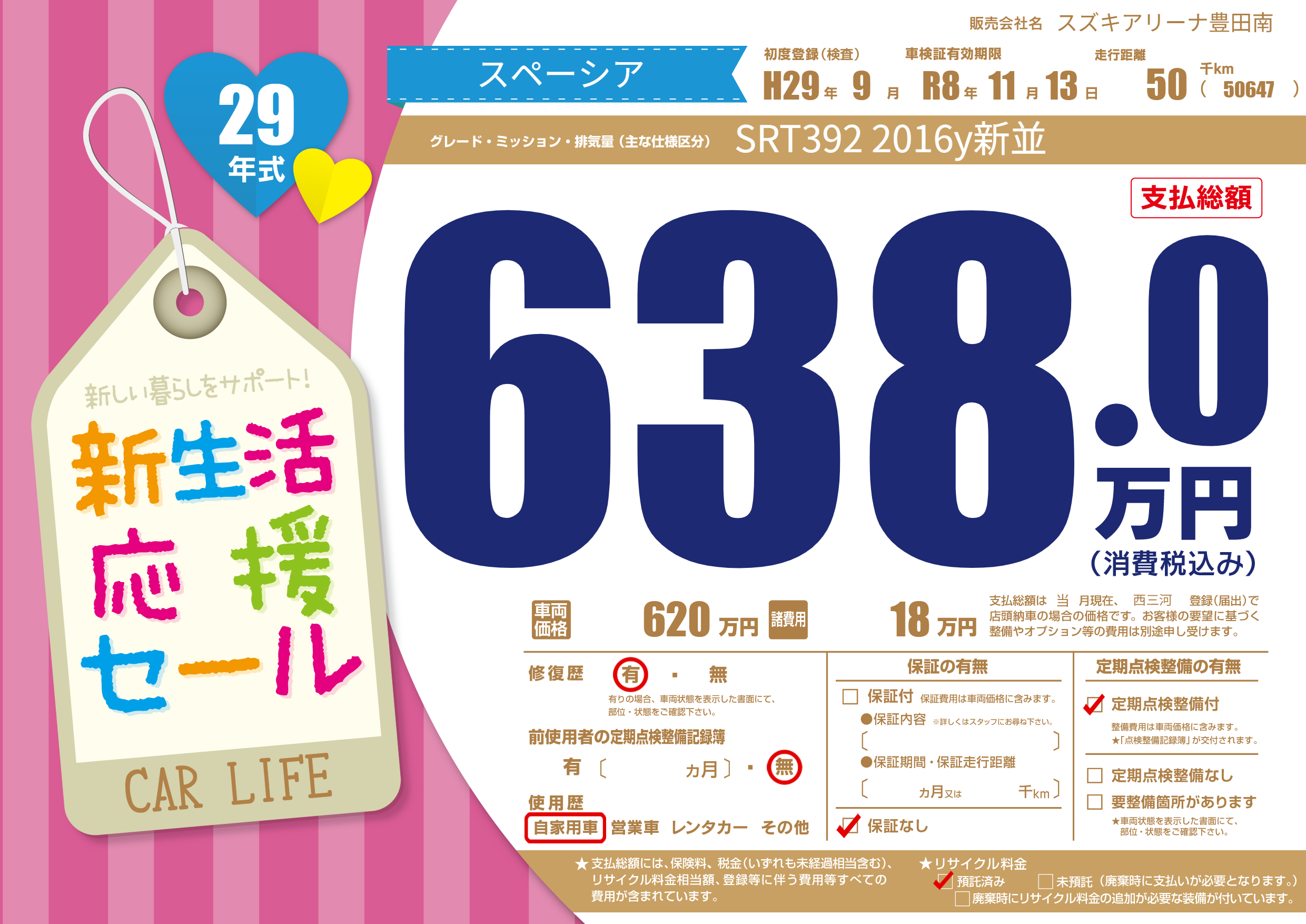 | 走行キロ | 5万km | 初年度登録 | H29年9月 |