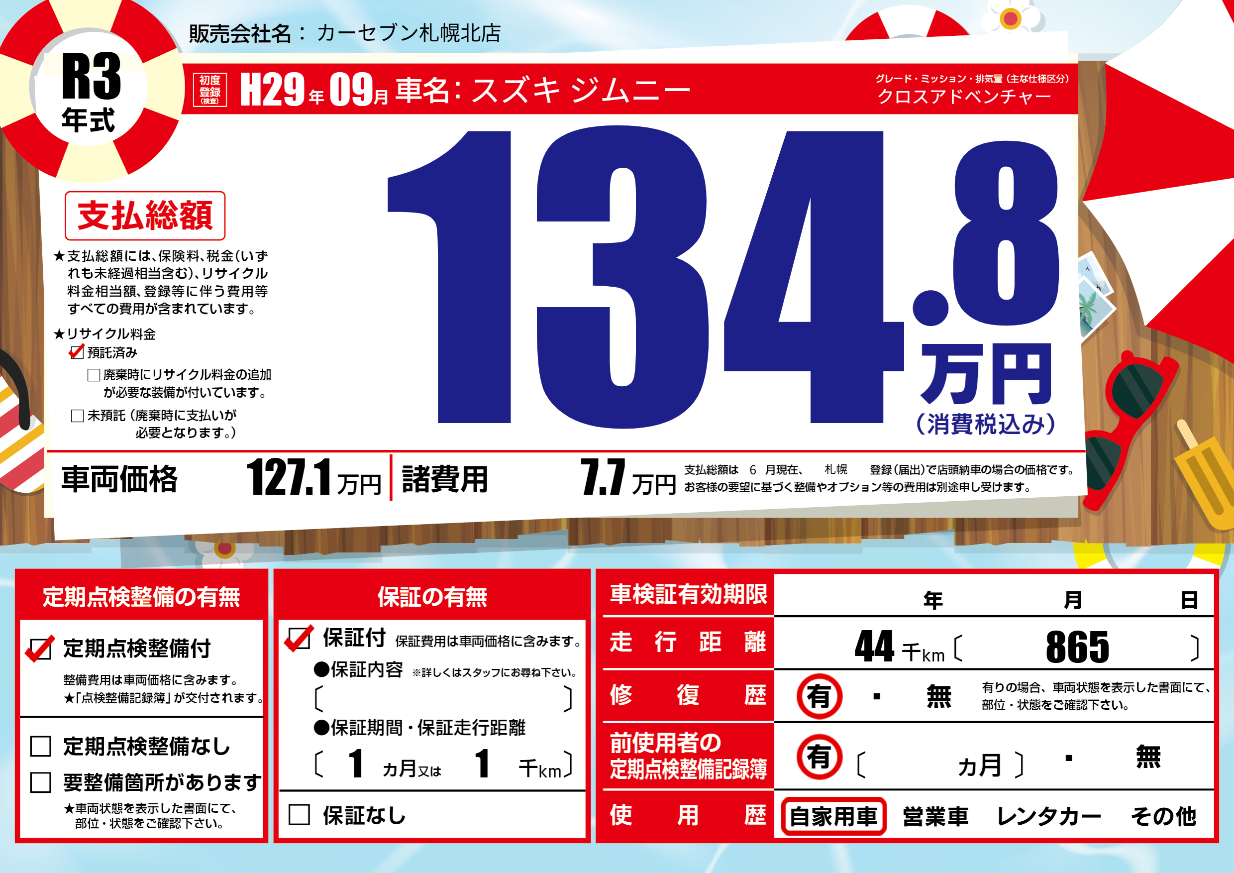 | 走行キロ | 4.4万km | 初年度登録 | H29年09月 |