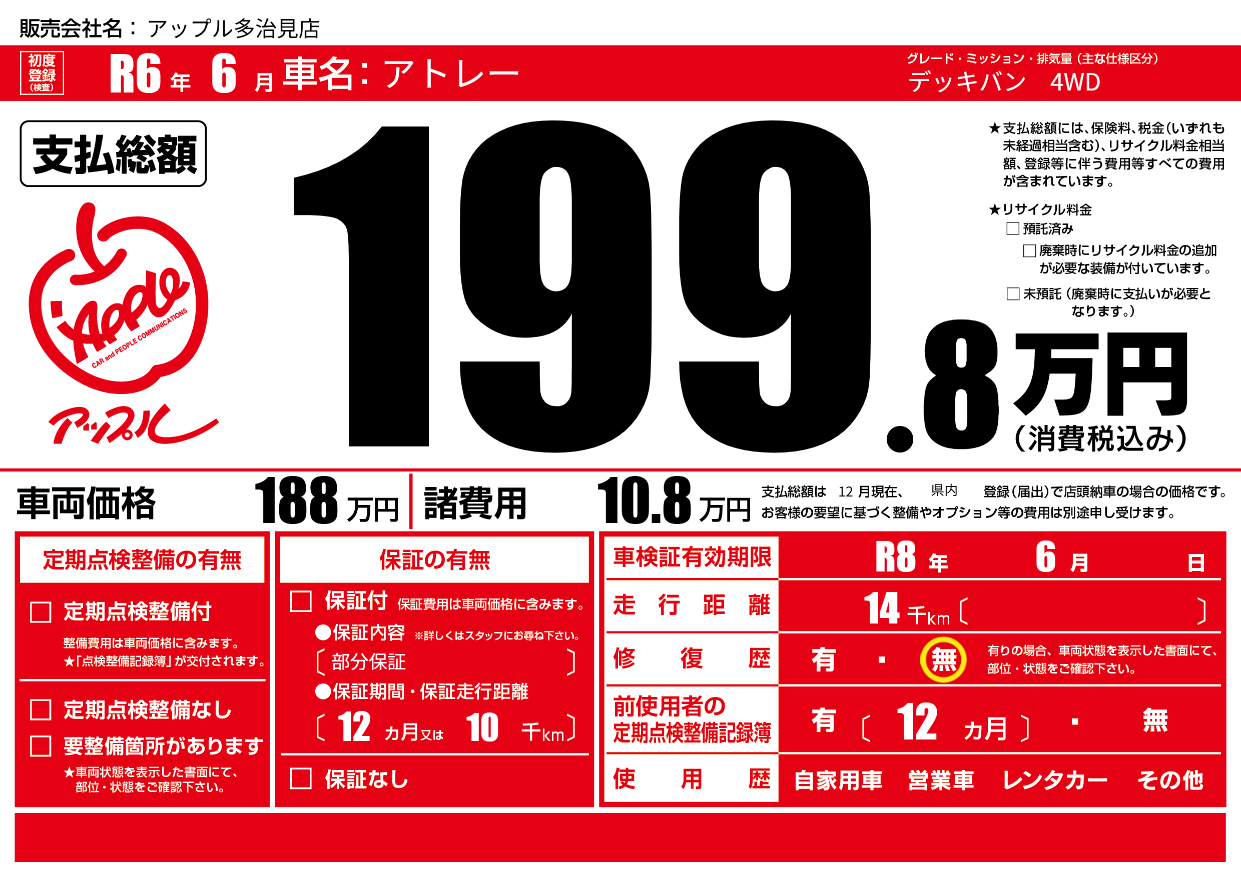 | 車名 | アトレー | グレード ミッション 排気量 |