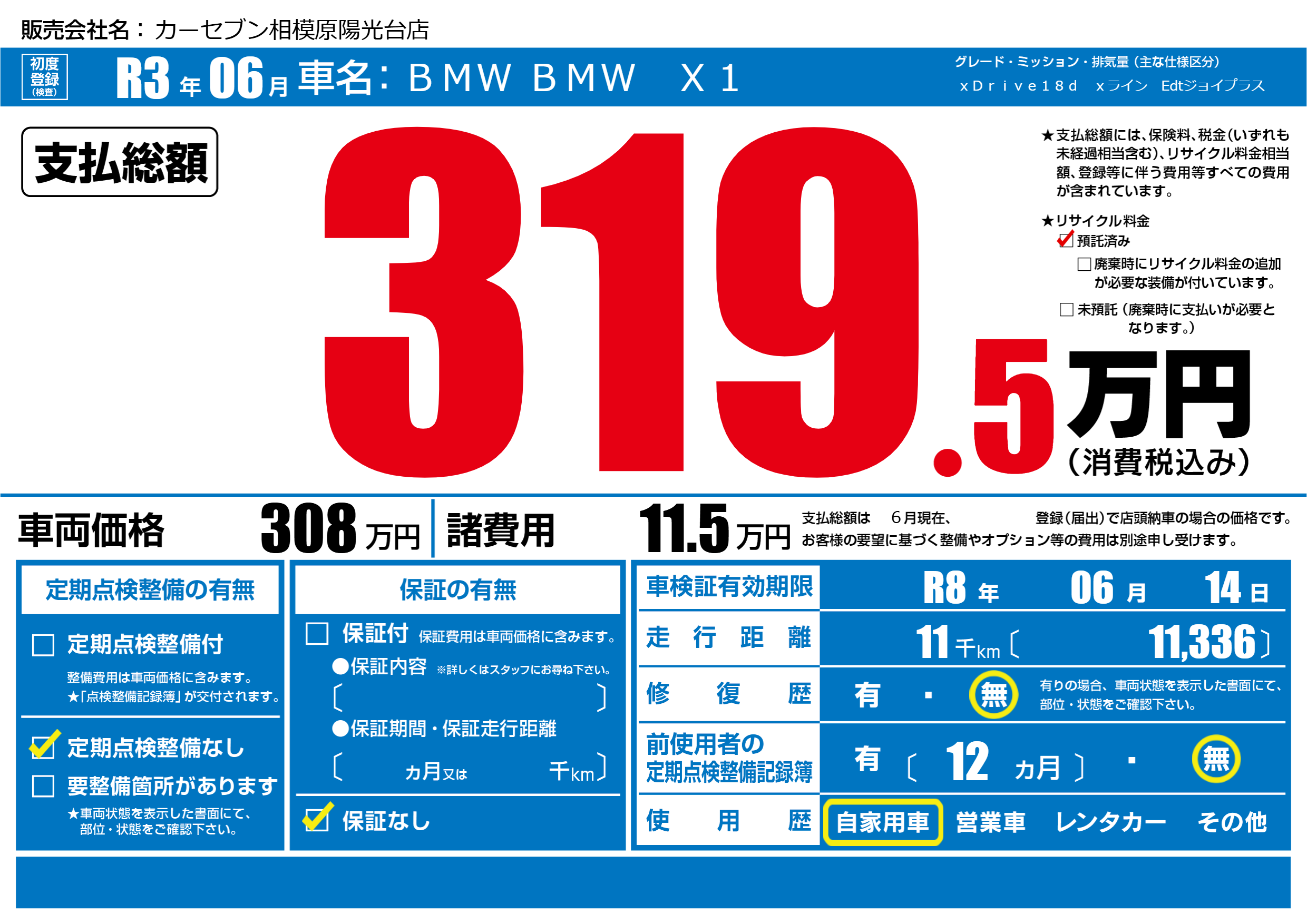 | 車名 | BMW BMW X1 | グレード ミッション 排気量 |