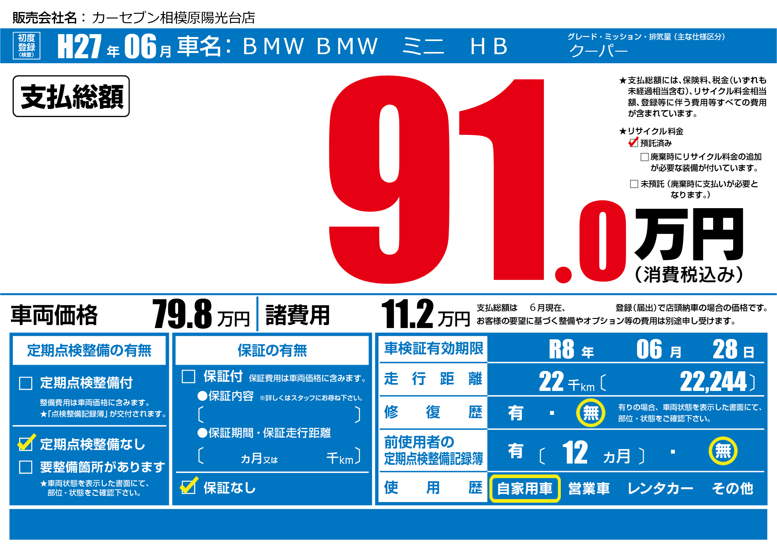 なし | 車検制限 | R8年06月28月 |