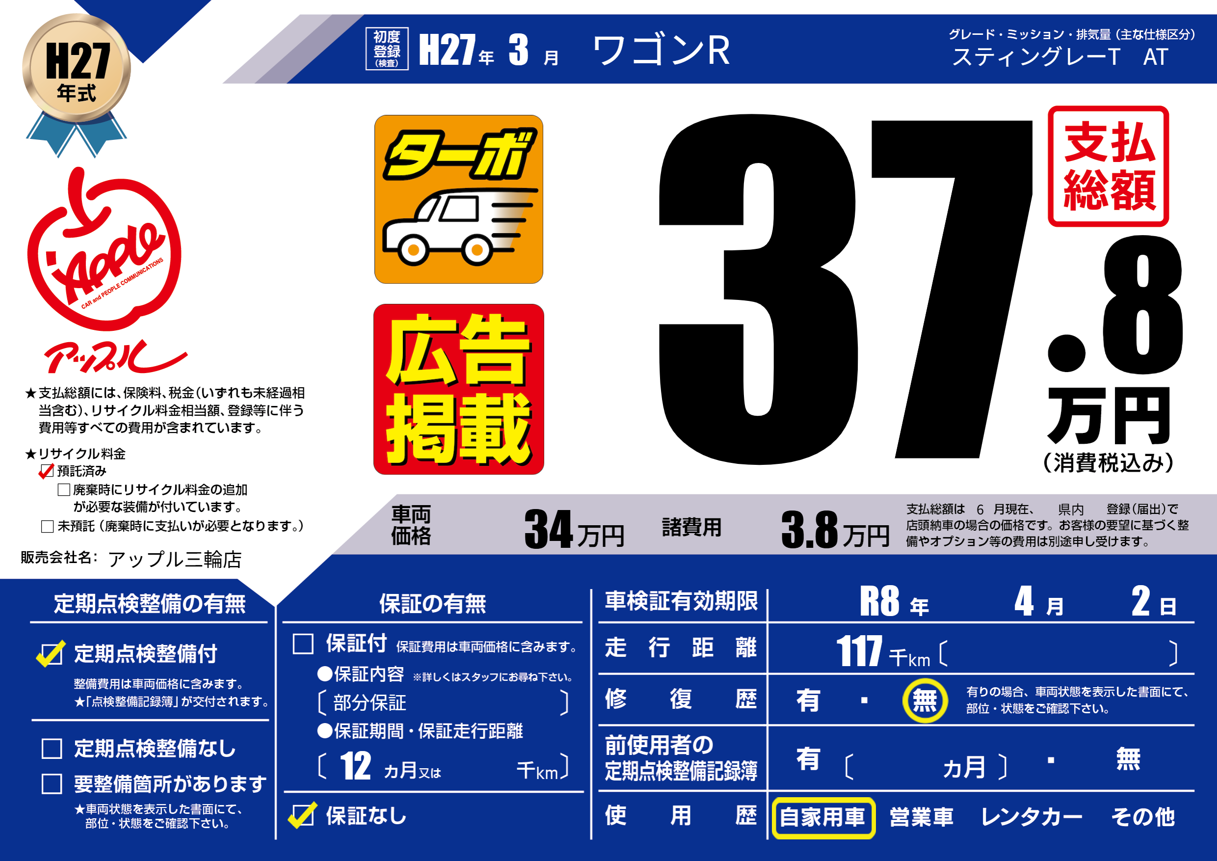 | 初年度登録 | H27年3月 | ||
