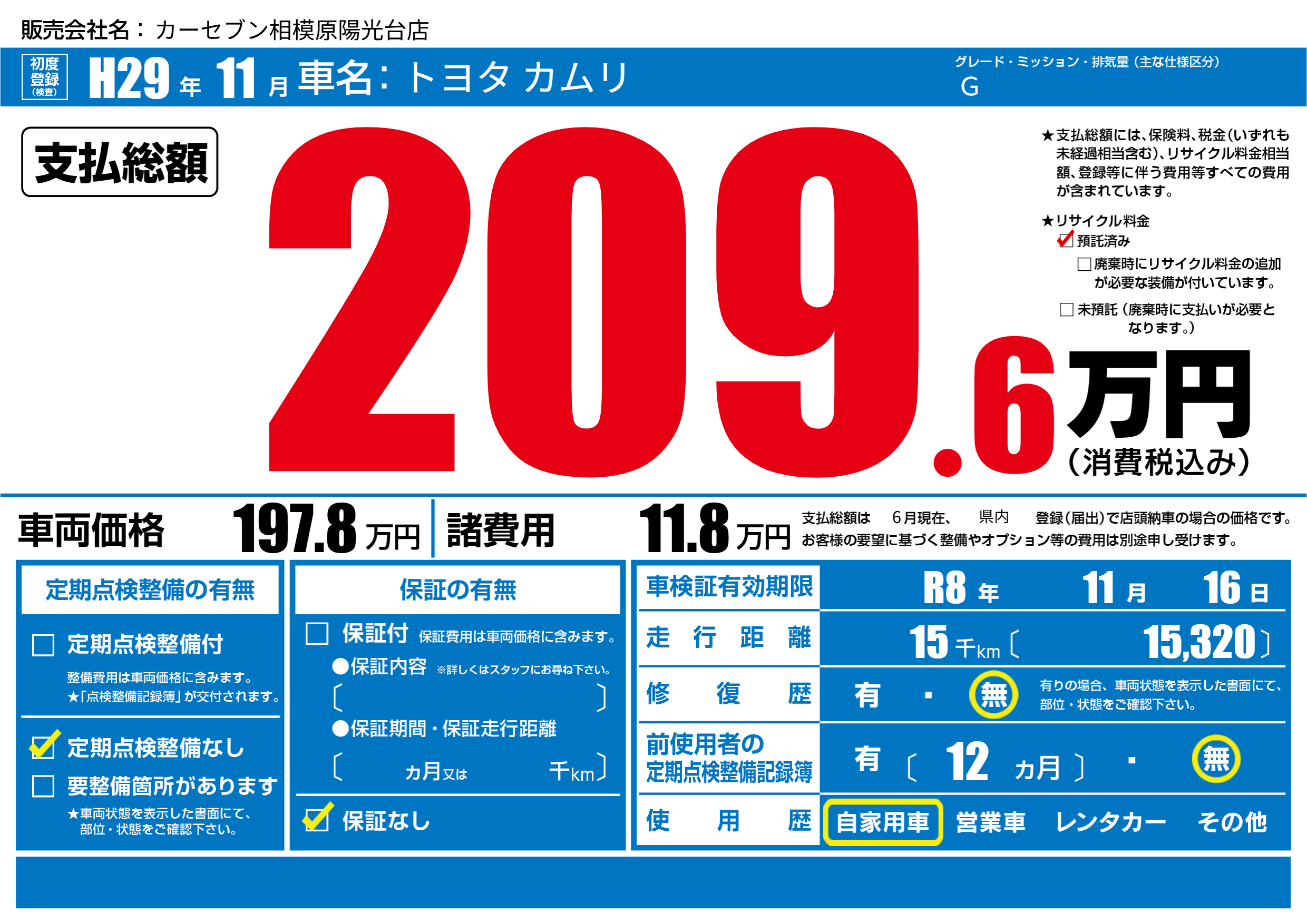 なし | 車検制限 | R8年11月16月 |