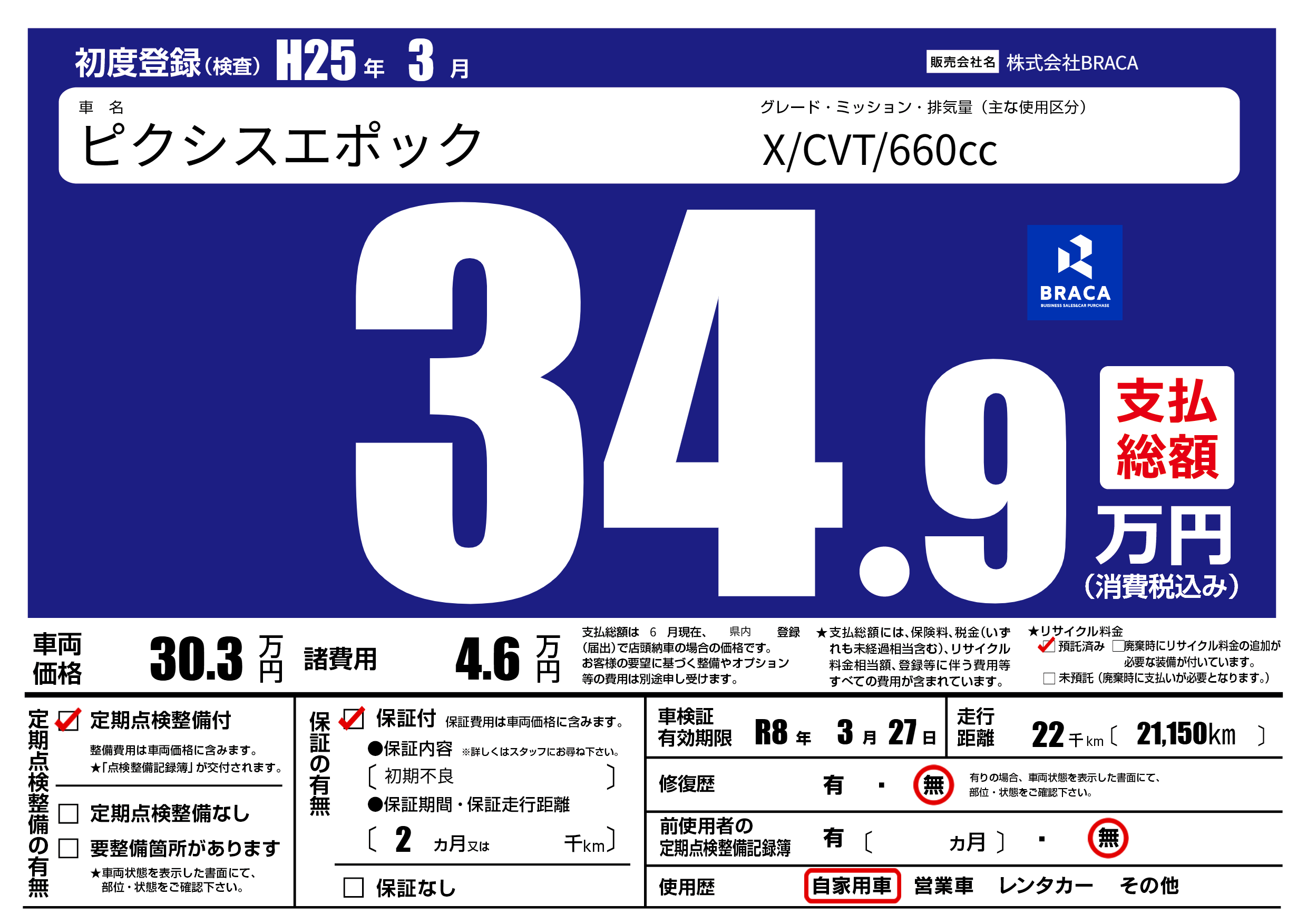| 車検制限 | R8年 3月 27日 | ||