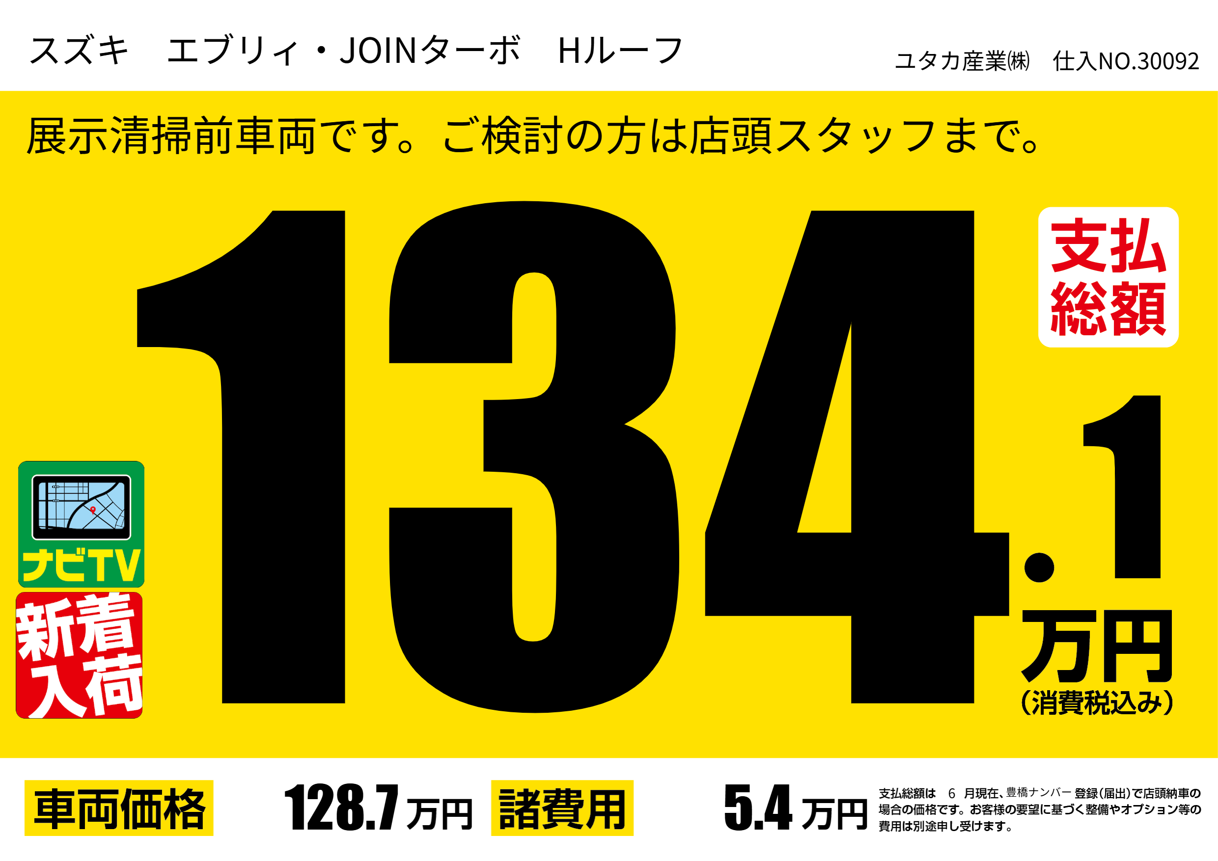 | 車名 | スズキ エブリィ・JOINターボ Hルーフ | グレード ミッション 排気量 |