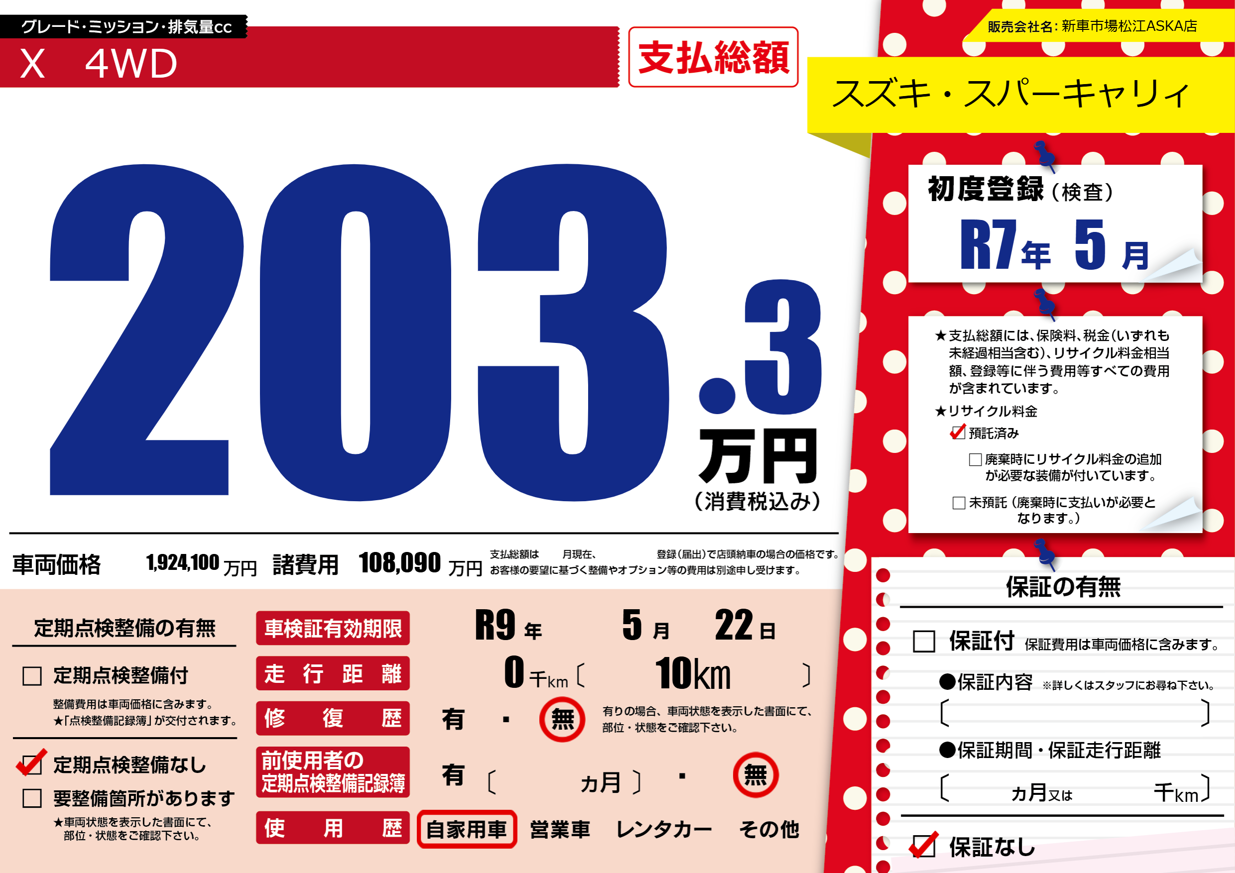 | 走行キロ | - | 初年度登録 | R7年5月 |