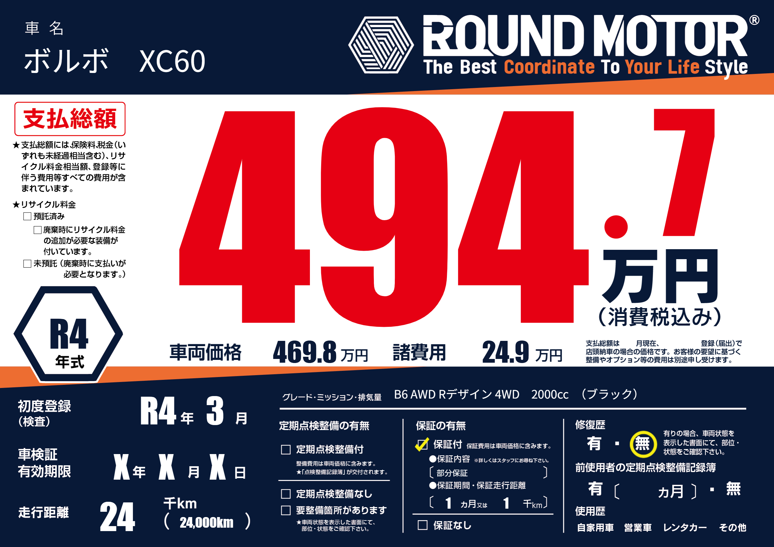| 車名 | ボルボ XC60 | グレード ミッション 排気量 |