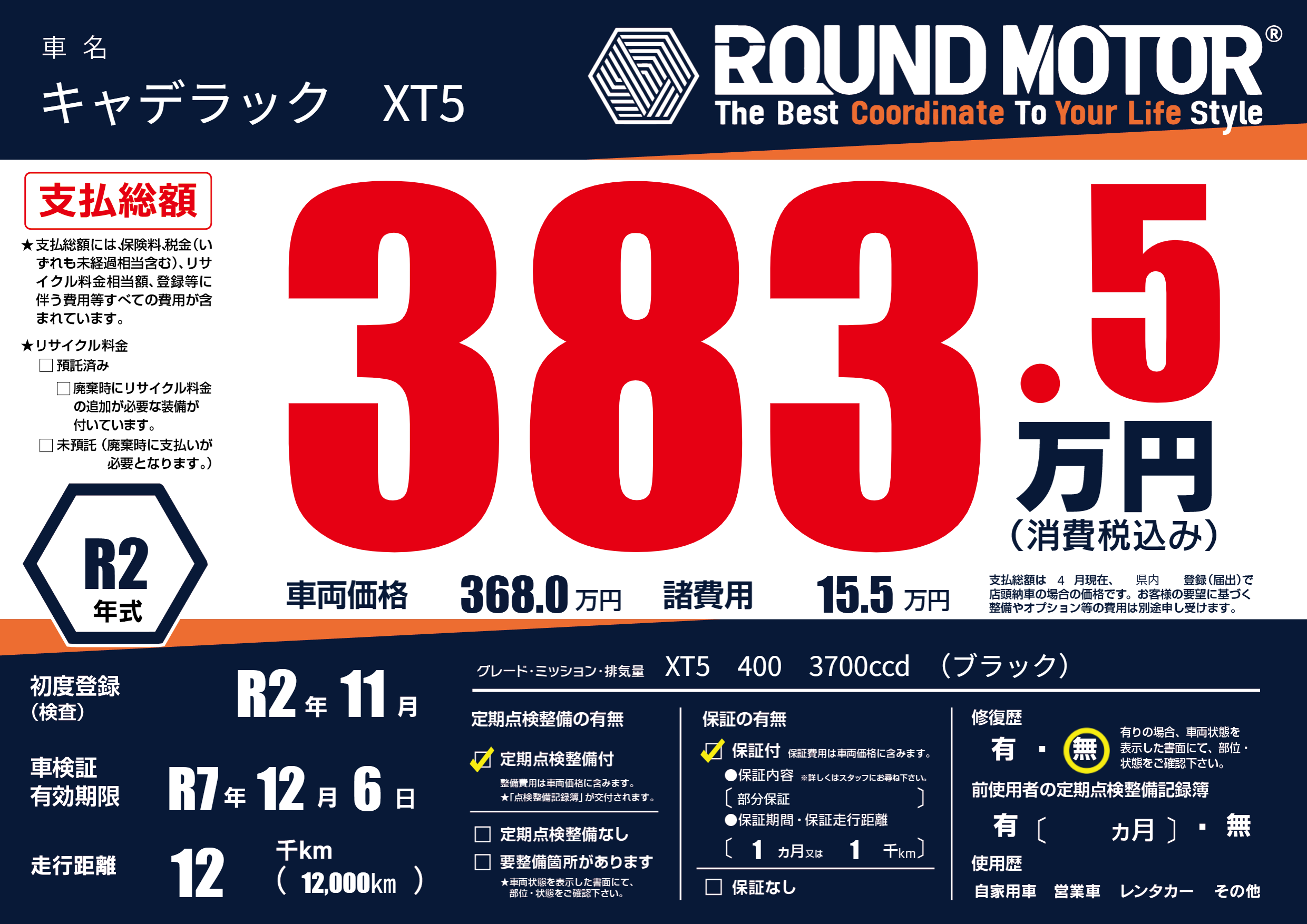 | 車名 | キャデラック XT5 | グレード ミッション 排気量 |
