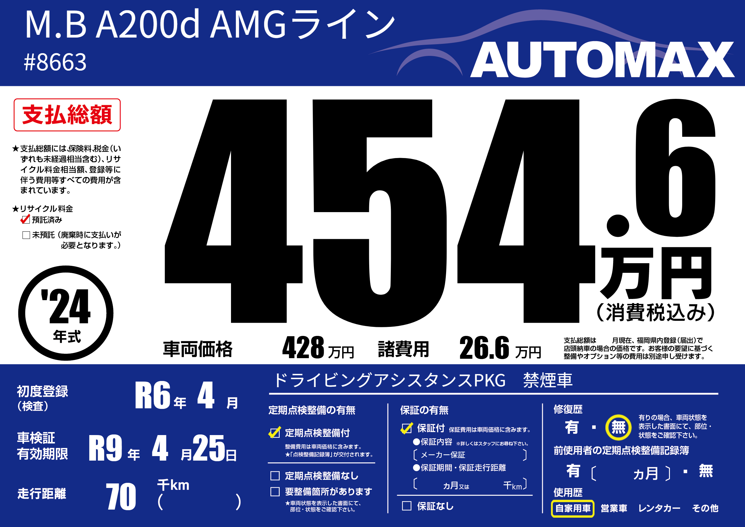 車検制限 R9年 4月 25日