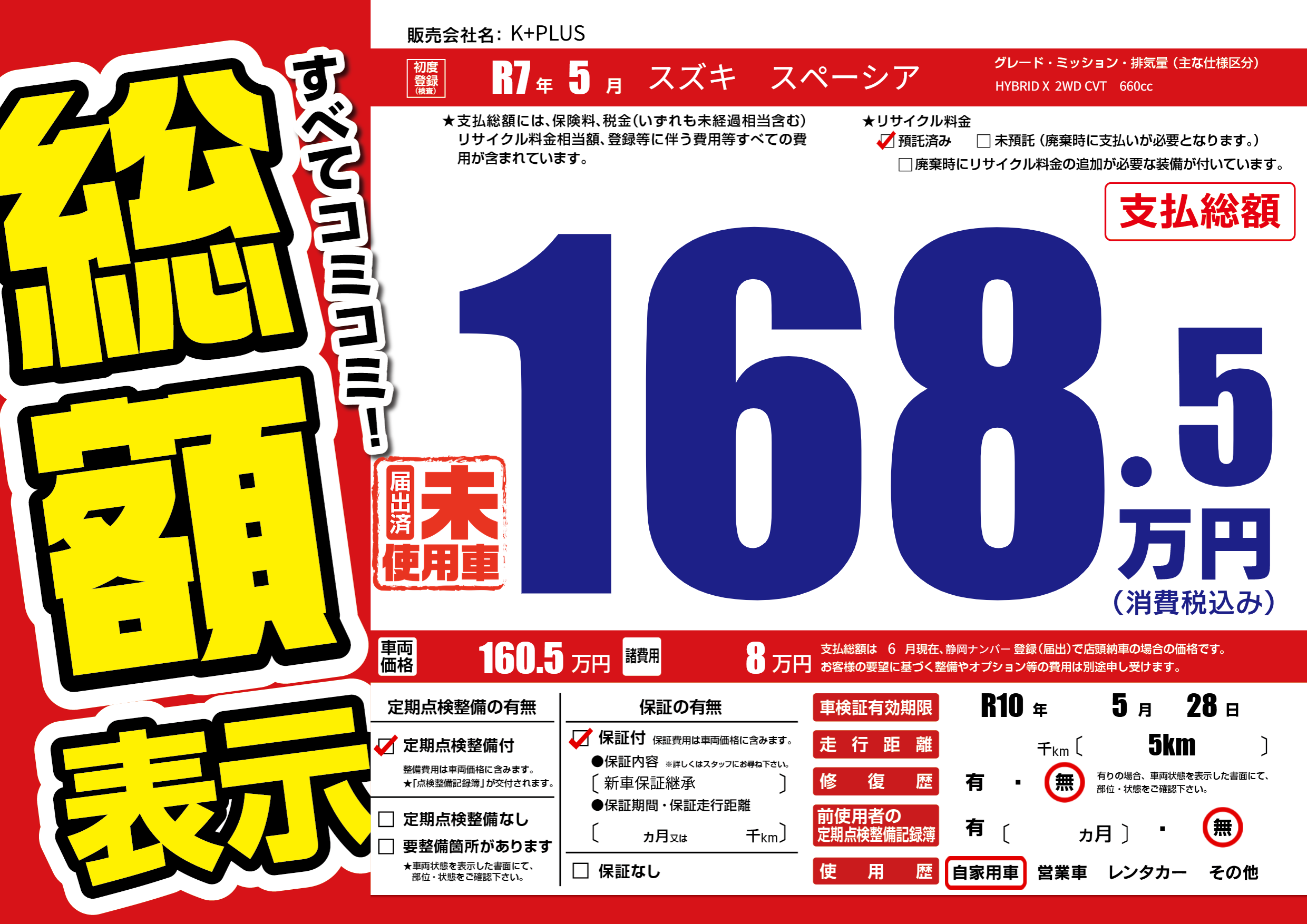 | 走行キロ | - | 初年度登録 | R7年5月 |
