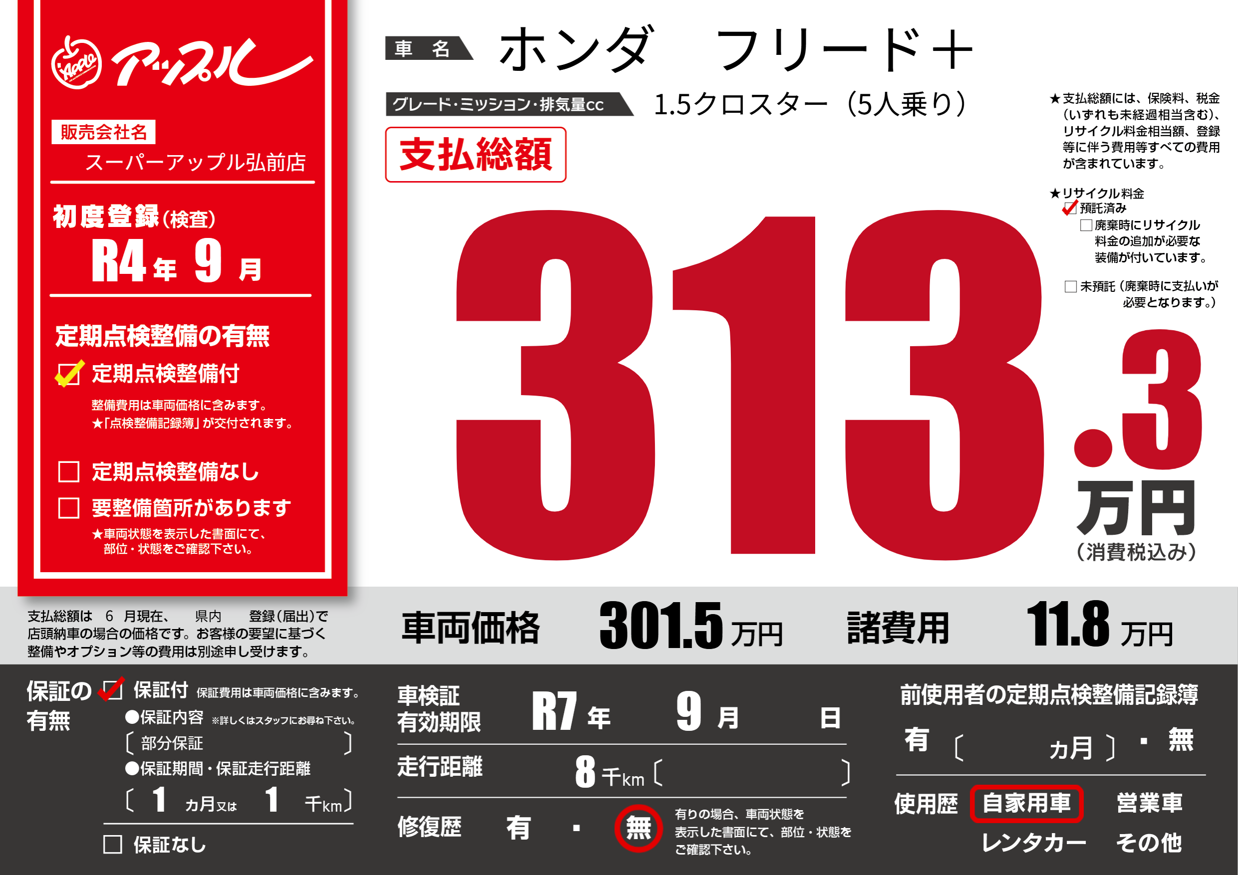 | 走行キロ | 0.8万km | 初年度登録 | R4年9月 |