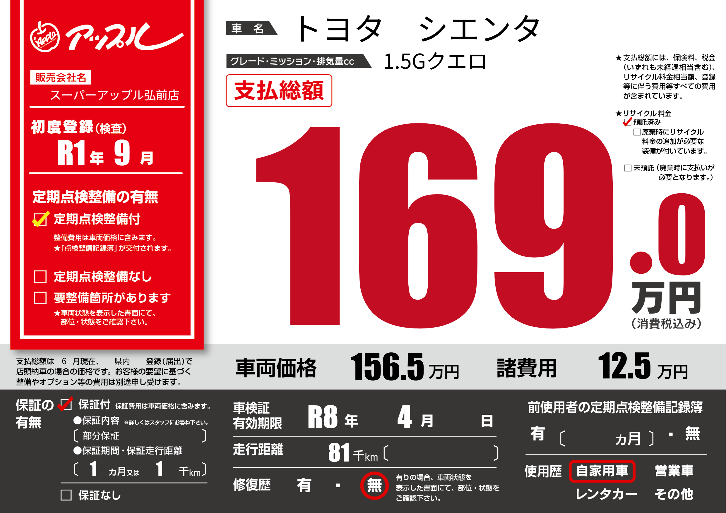 なし | 車検制限 | R8年4月---月 |