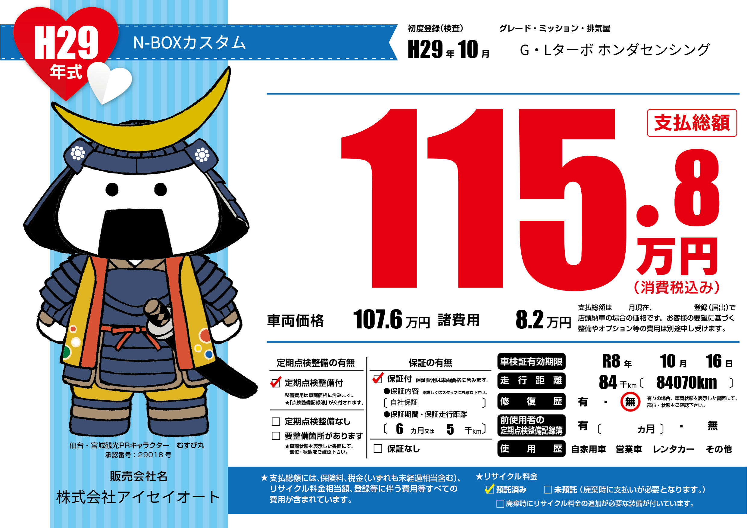 | 車名 | N-BOXカスタム | グレード ミッション 排気量 |