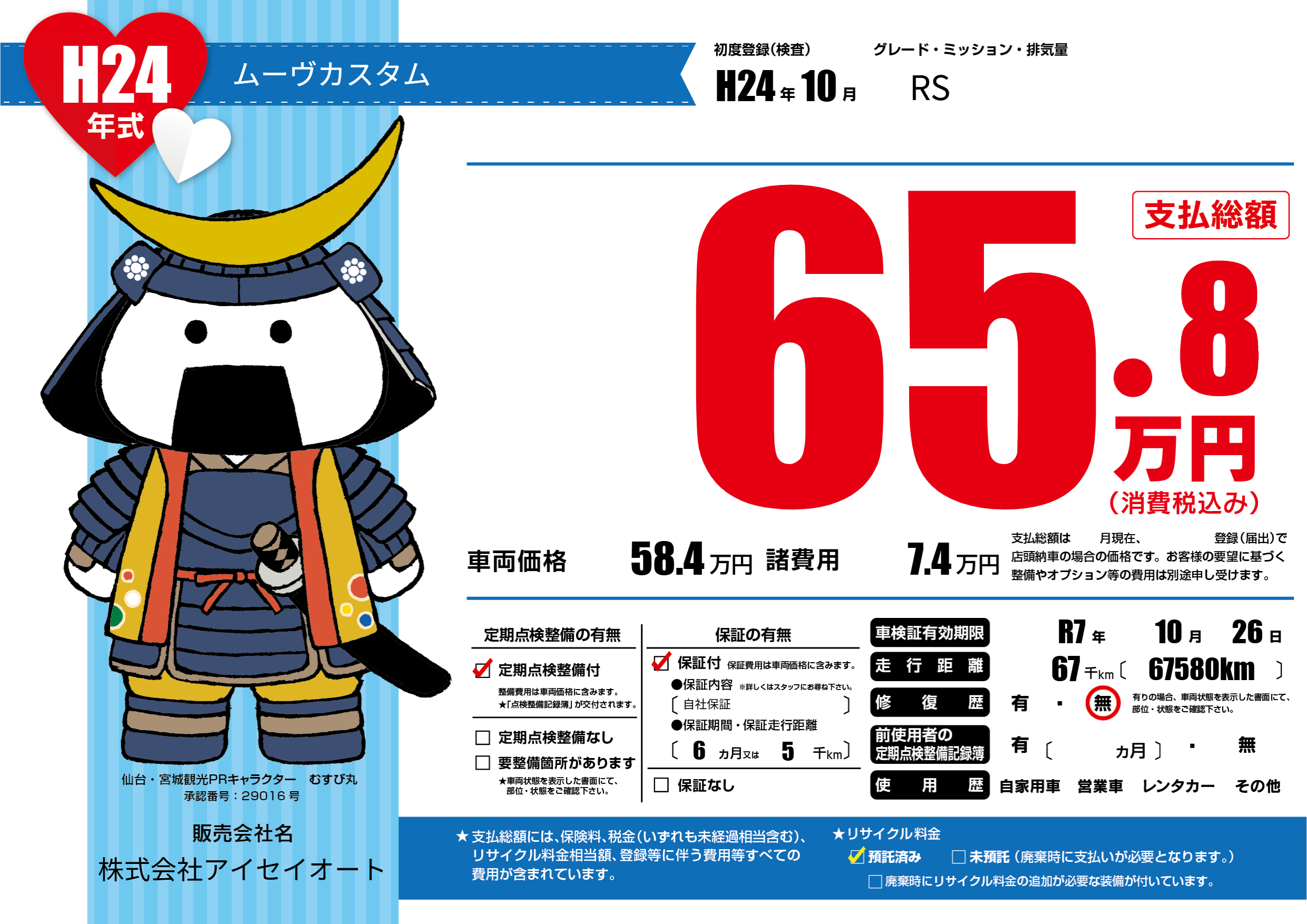 保証付き 保証内容(自社保証) 6ヶ月または5千km |
