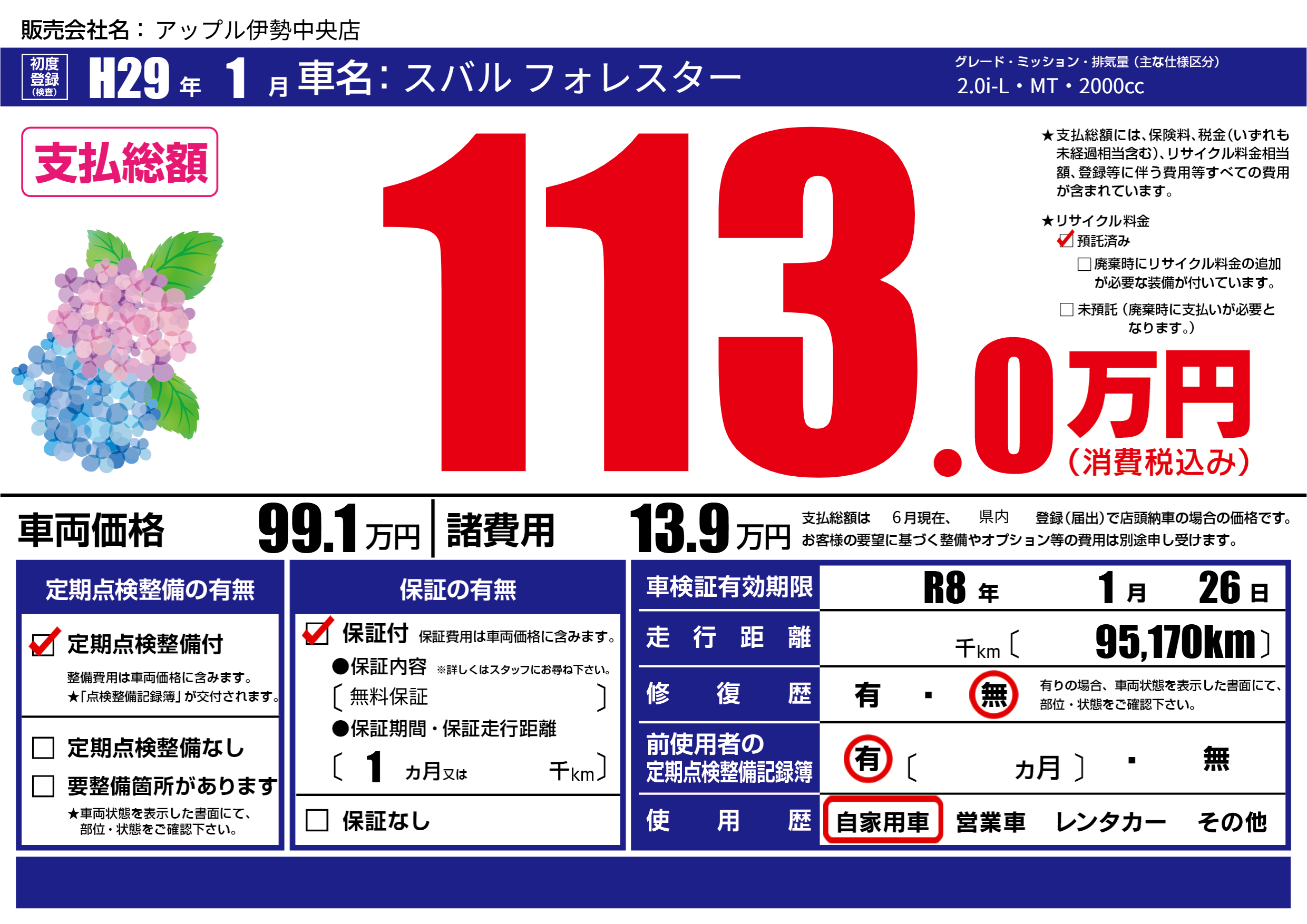なし | 車検制限 | R8年1月26月 |