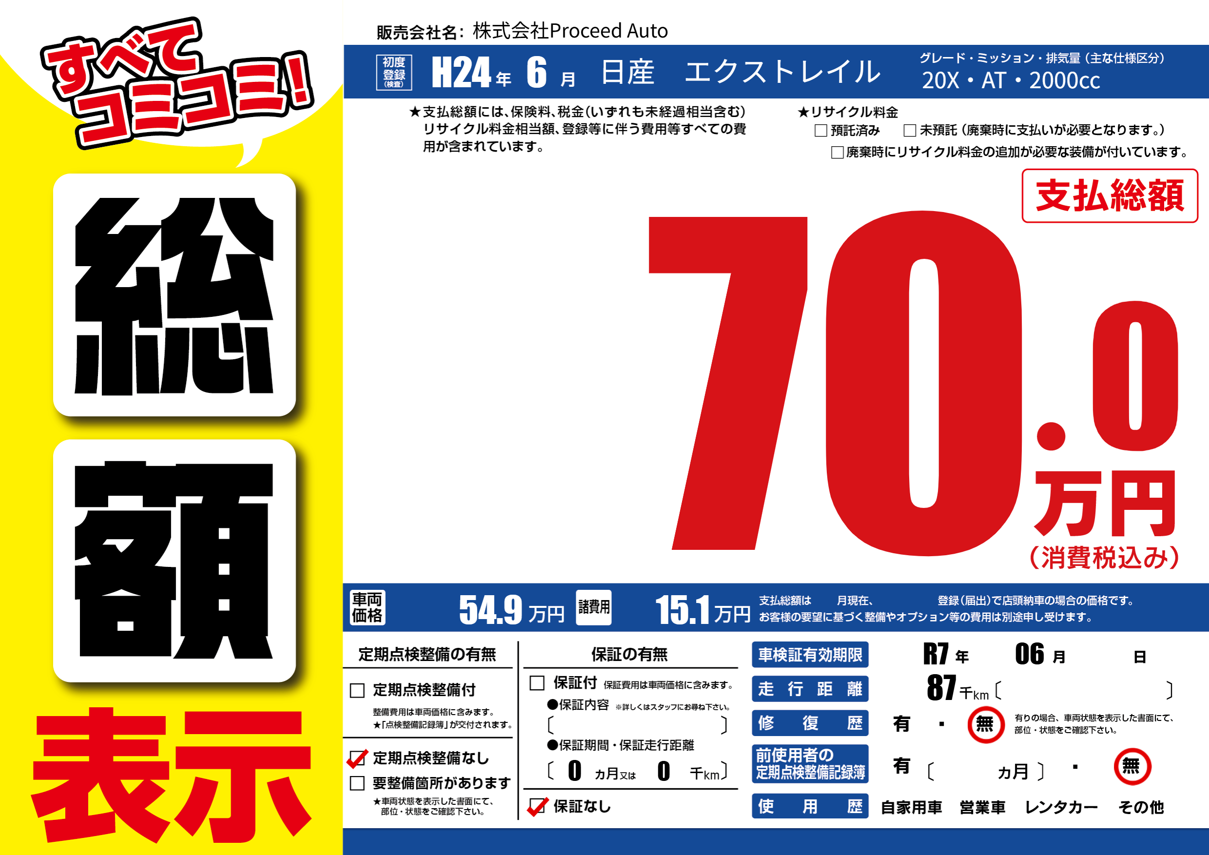 | 車名 | 日産 エクストレイル | グレード ミッション 排気量 |
