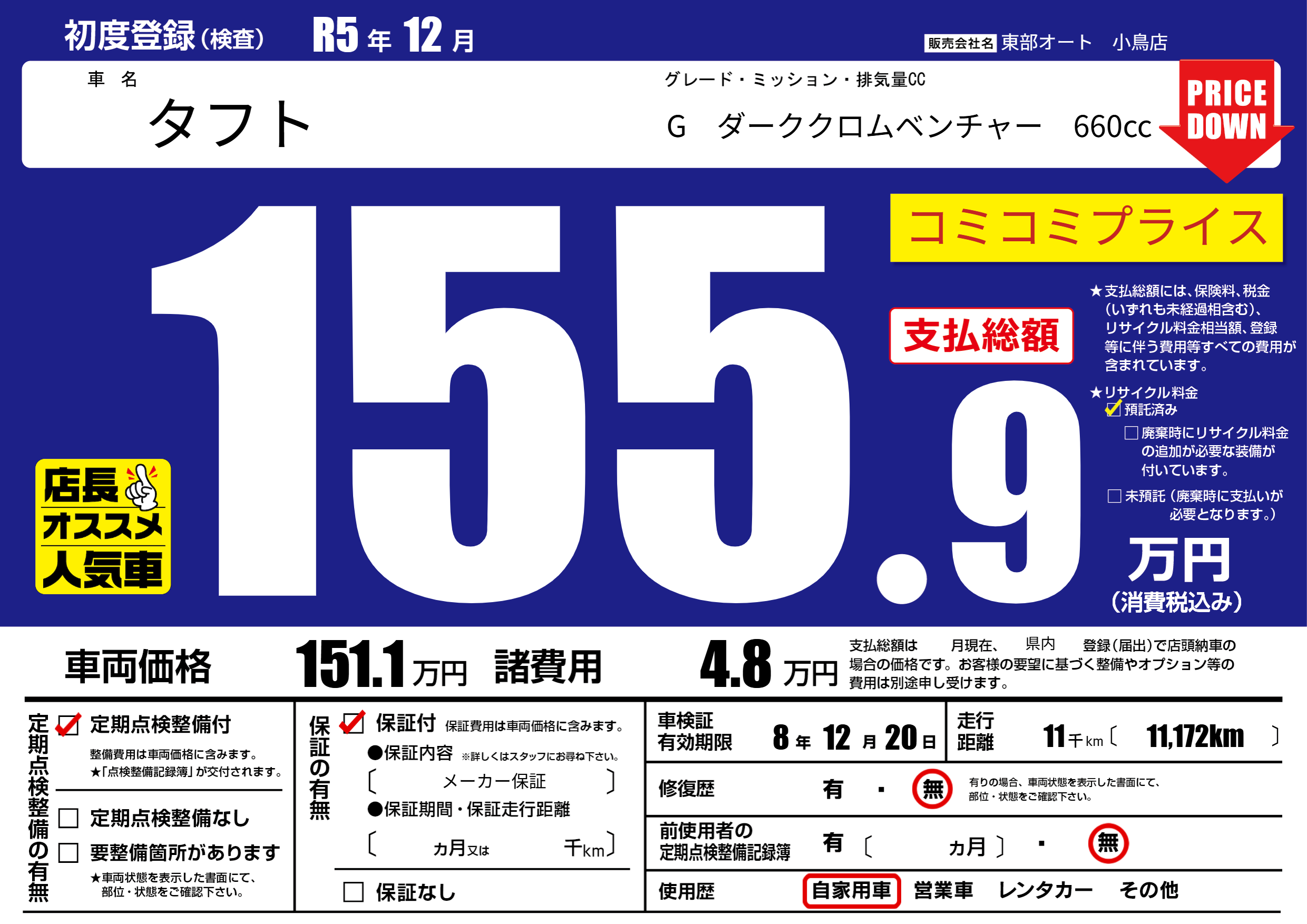 | 走行キロ | 1.1万km | 初年度登録 | R5年12月 |