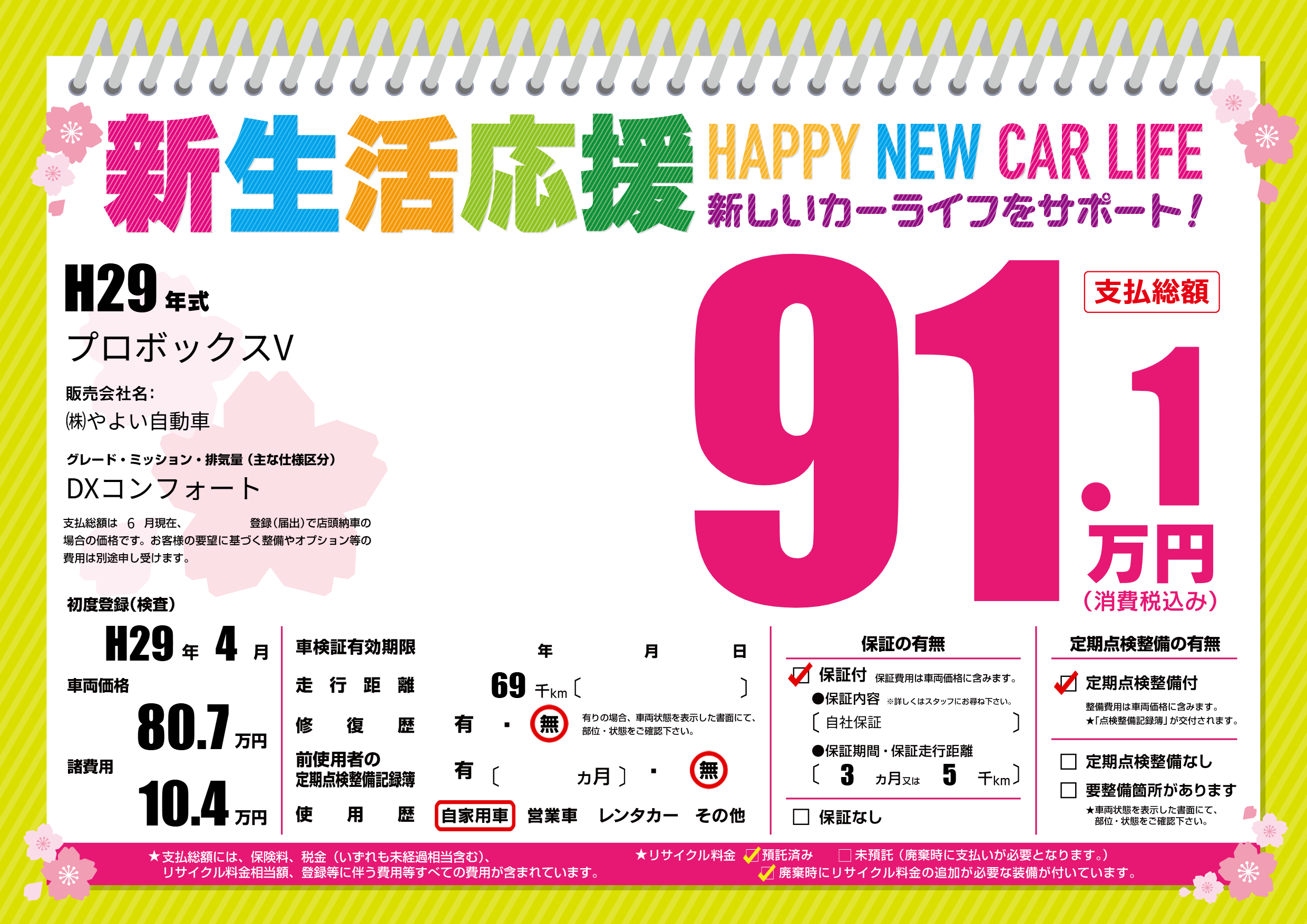 | 車名 | プロボックスV | グレード ミッション 排気量 |