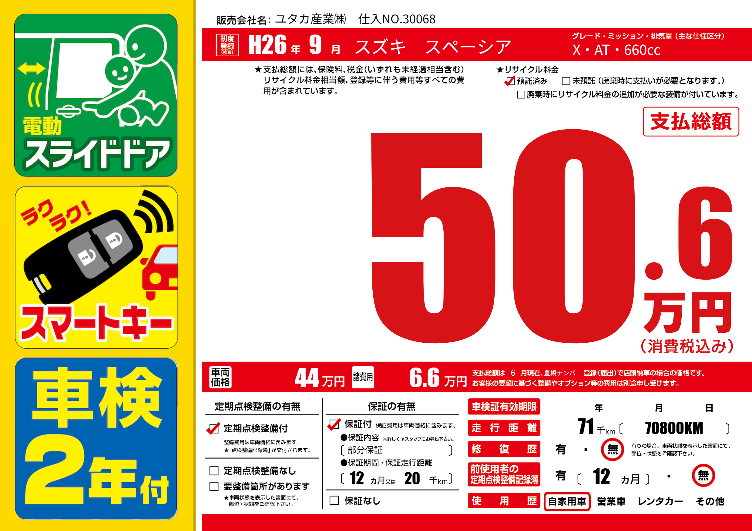| 走行キロ | 7.1万km | 初年度登録 | H26年9月 |