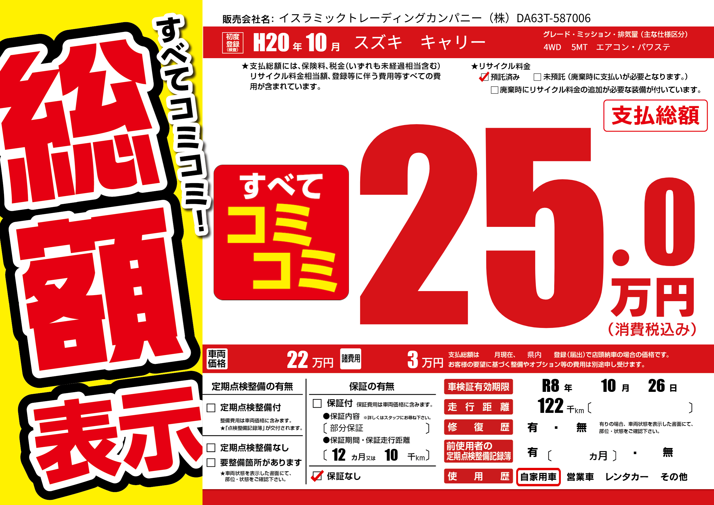| 車検制限 | R8年 10月 26日 | ||
