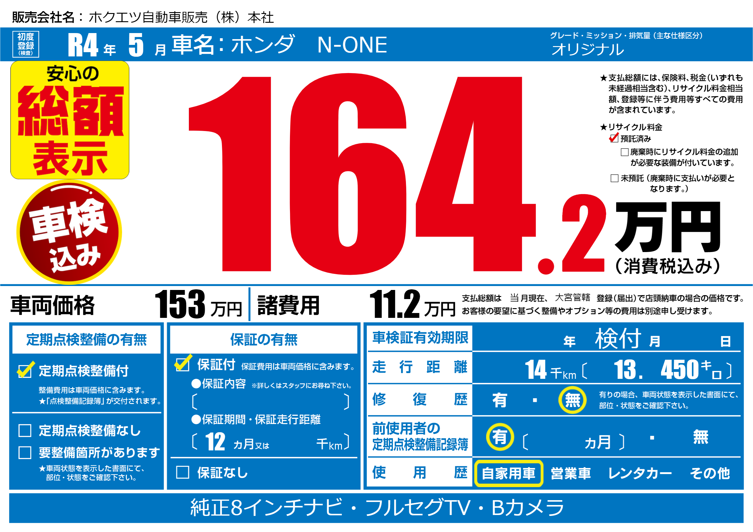 | 走行キロ | 1.4万km | 初年度登録 | R4年5月 |