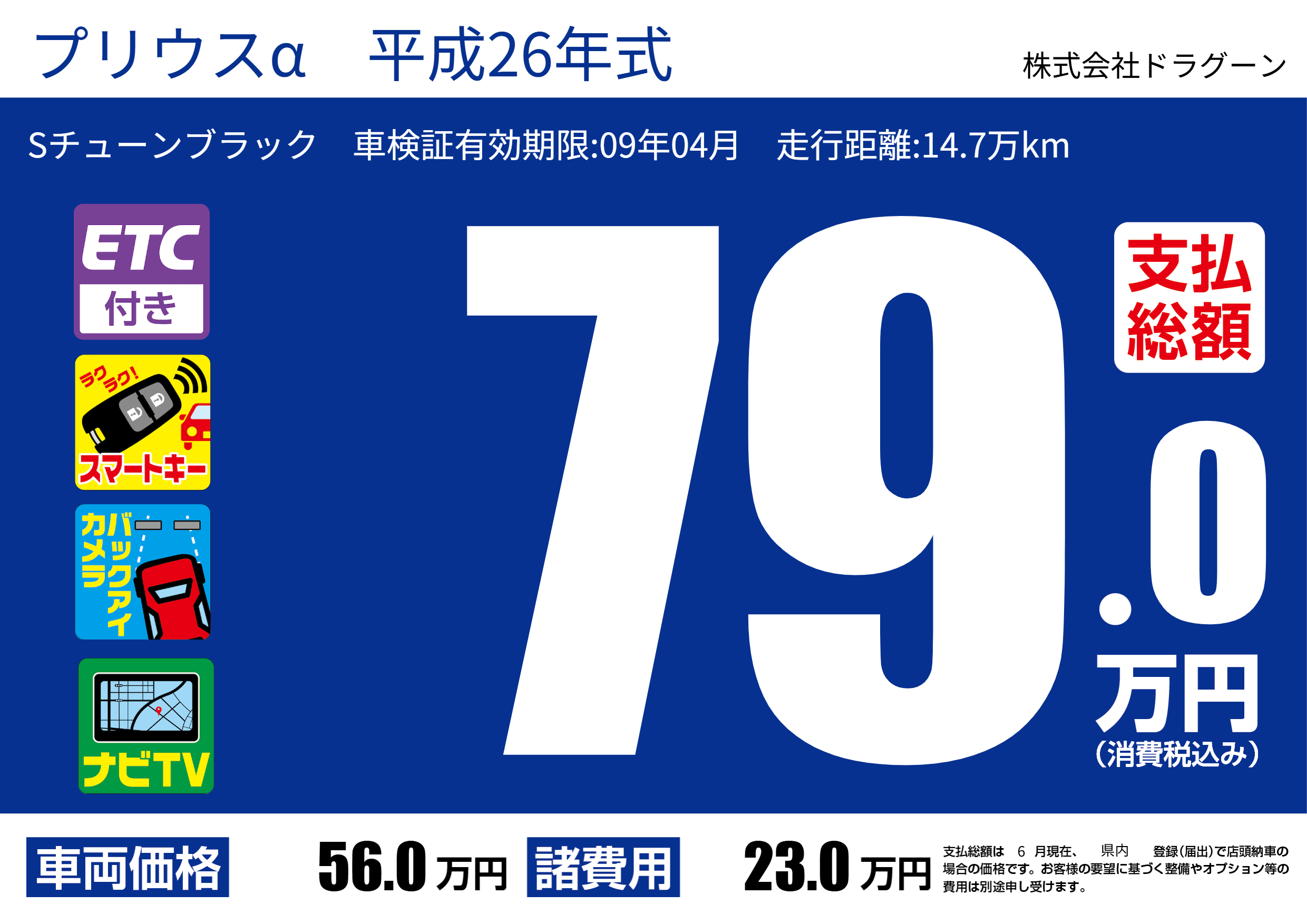 | 車名 | プリウスα 平成26年式 | グレード ミッション 排気量 |
