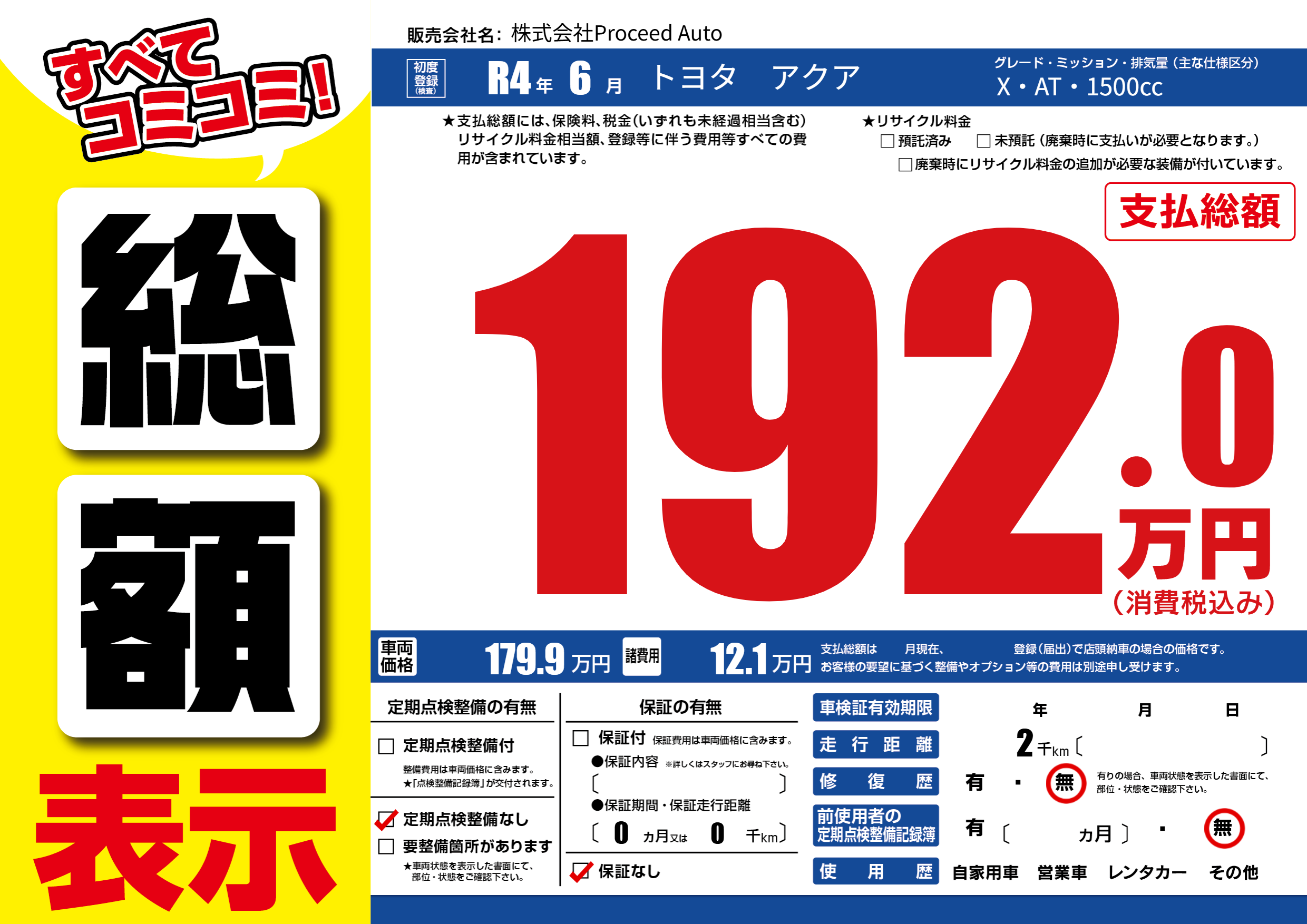 | 車検制限 | - 年 - 月 - 日 | ||