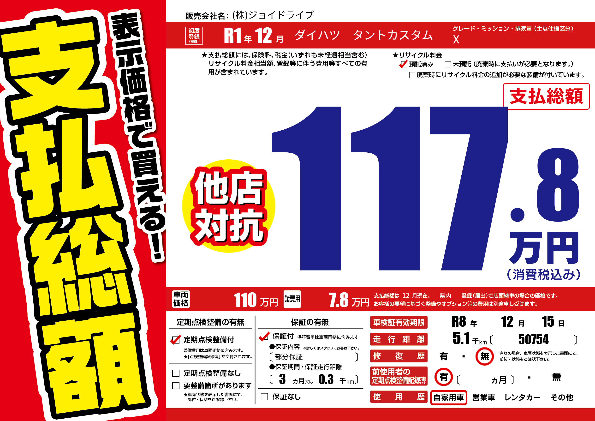 なし | 車検制限 | R8年12月15月 |