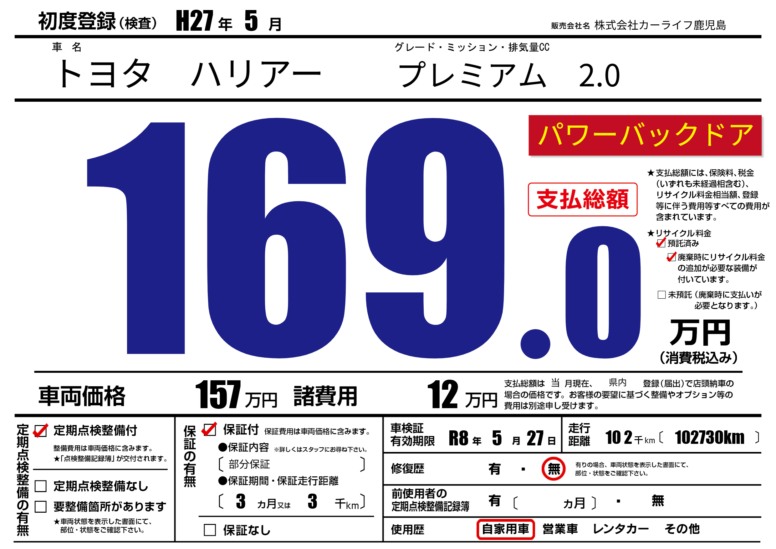 なし | 車検制限 | R8年5月27月 |