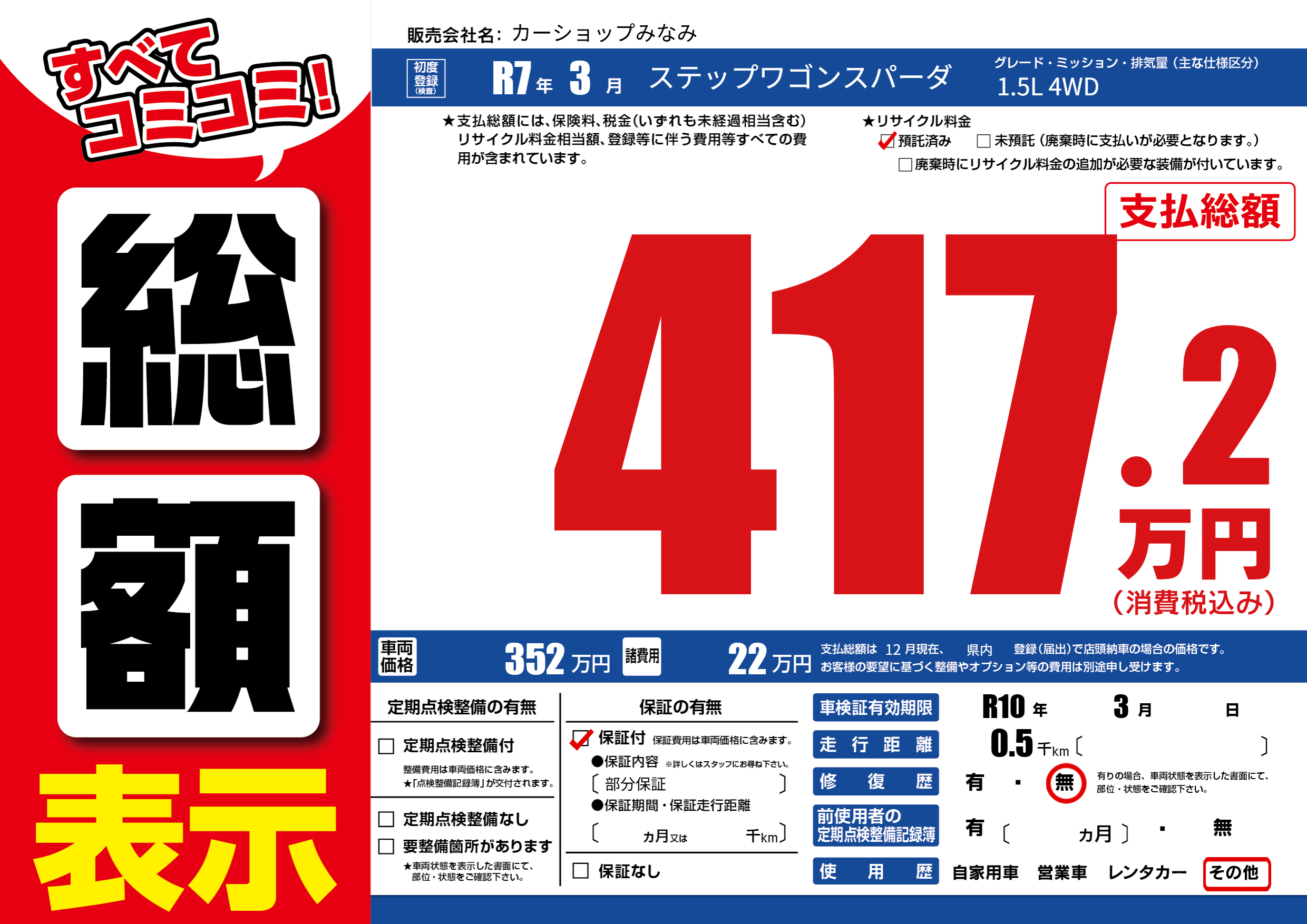 保証付き 保証内容(部分保証) ---ヶ月または()千kmまで |