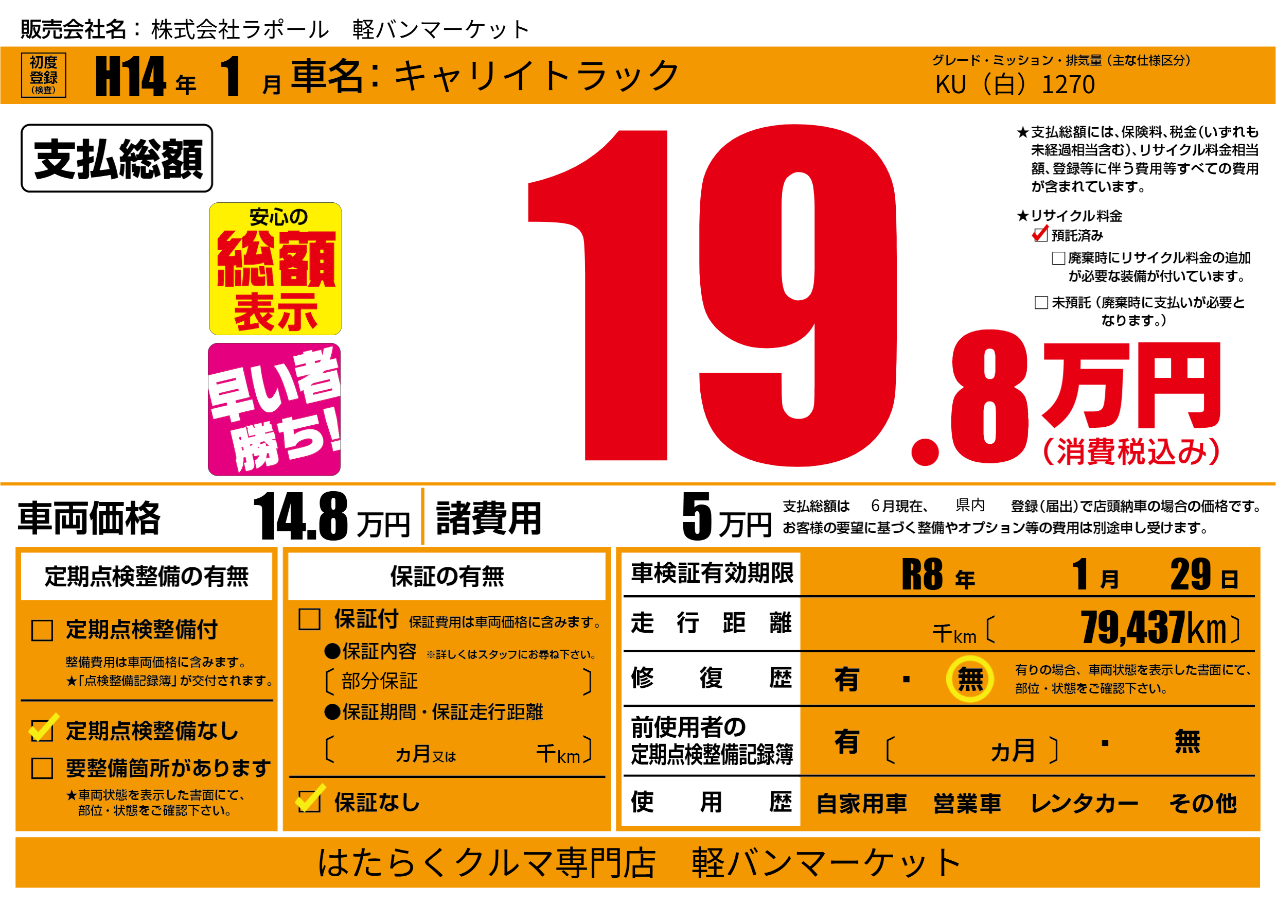 | 定期点検整備 | 定期点検整備なし | ||