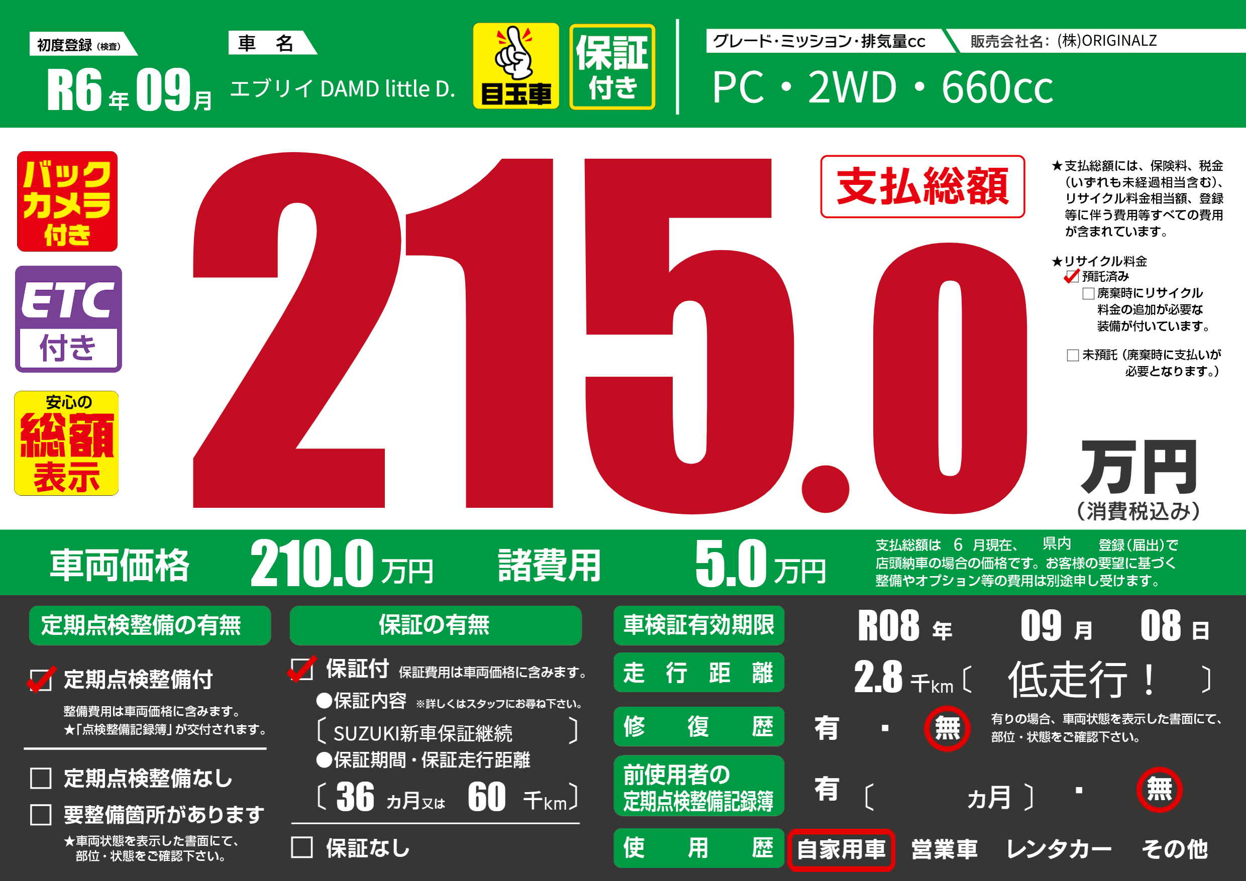 | 走行キロ | 0.2万km | 初年度登録 | R6年09月 |