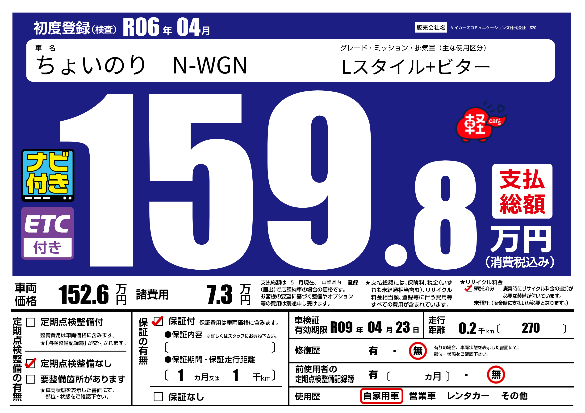 | 走行キロ | - | 初年度登録 | R06年04月 |