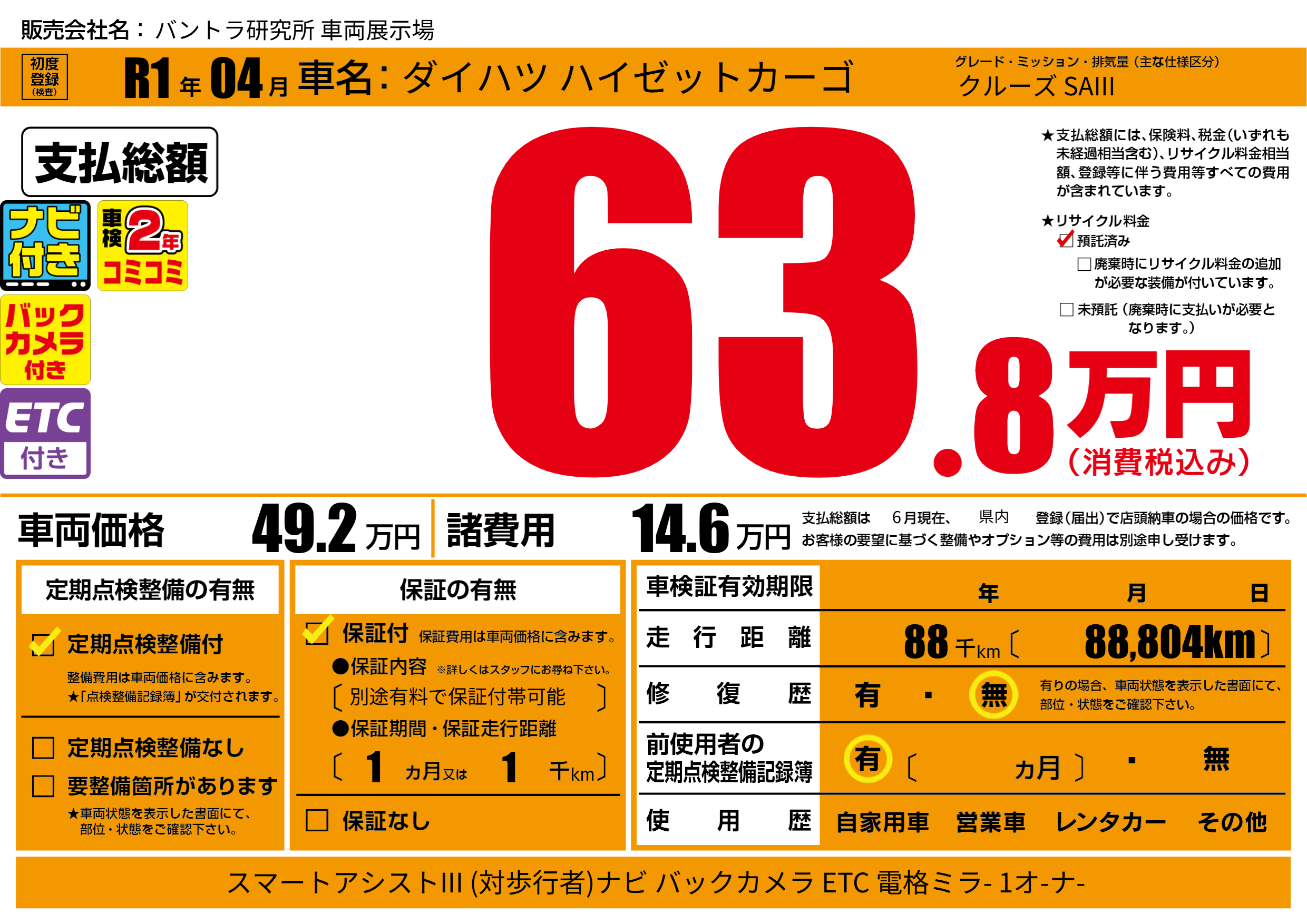 | 走行キロ | 8.8万km | ||