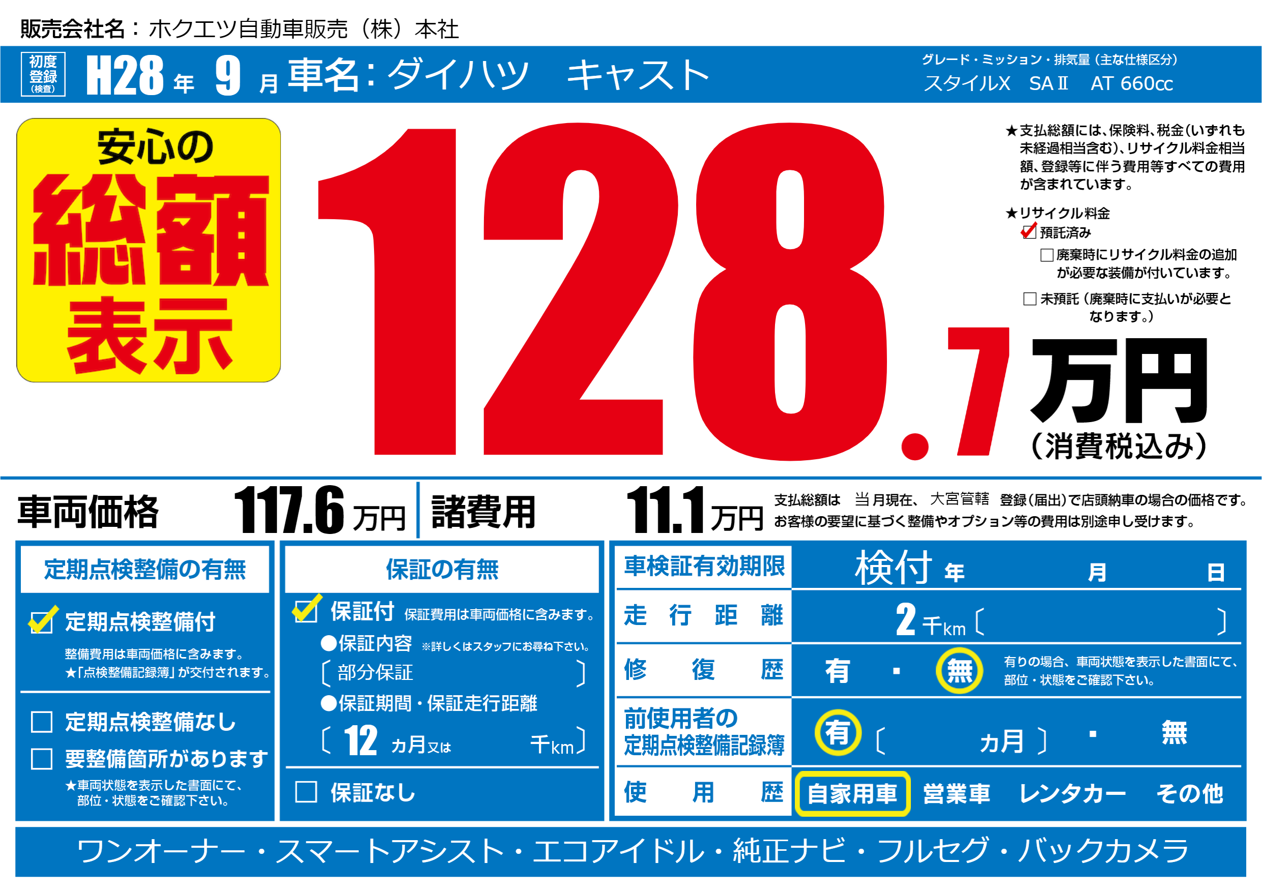 | 定期点検整備 | 定期点検整備あり | ||