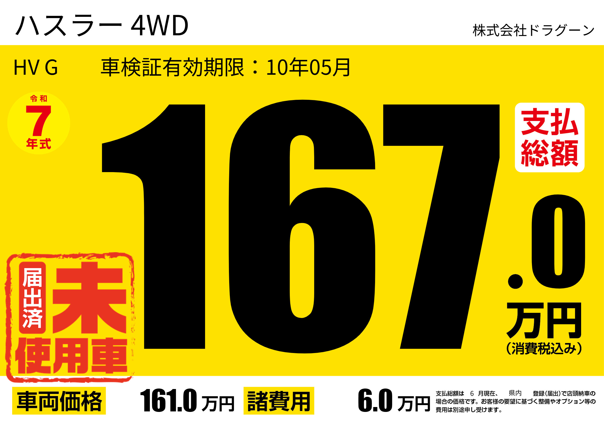 | 車名 | ハスラー 4WD | グレード ミッション 排気量 |