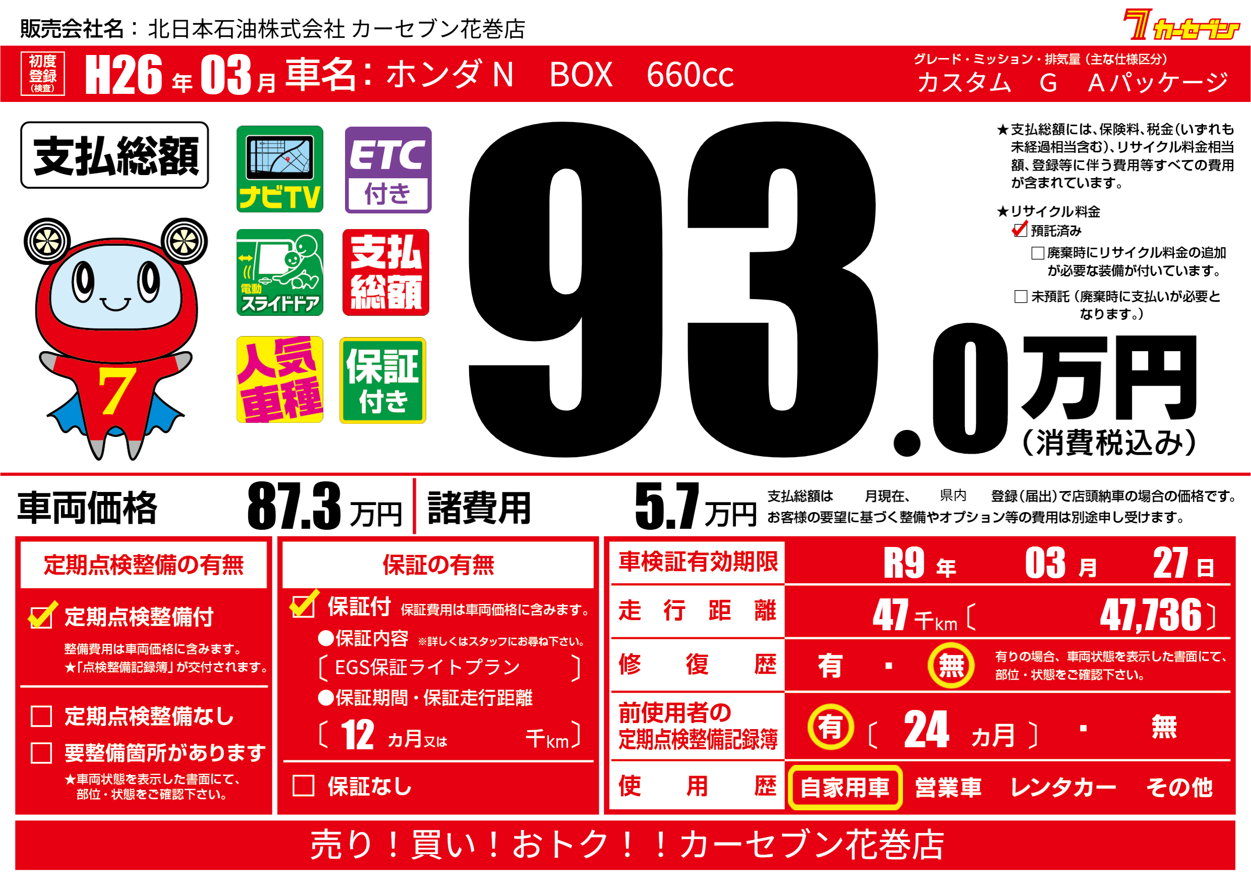 車検制限 R9年 03月 27日