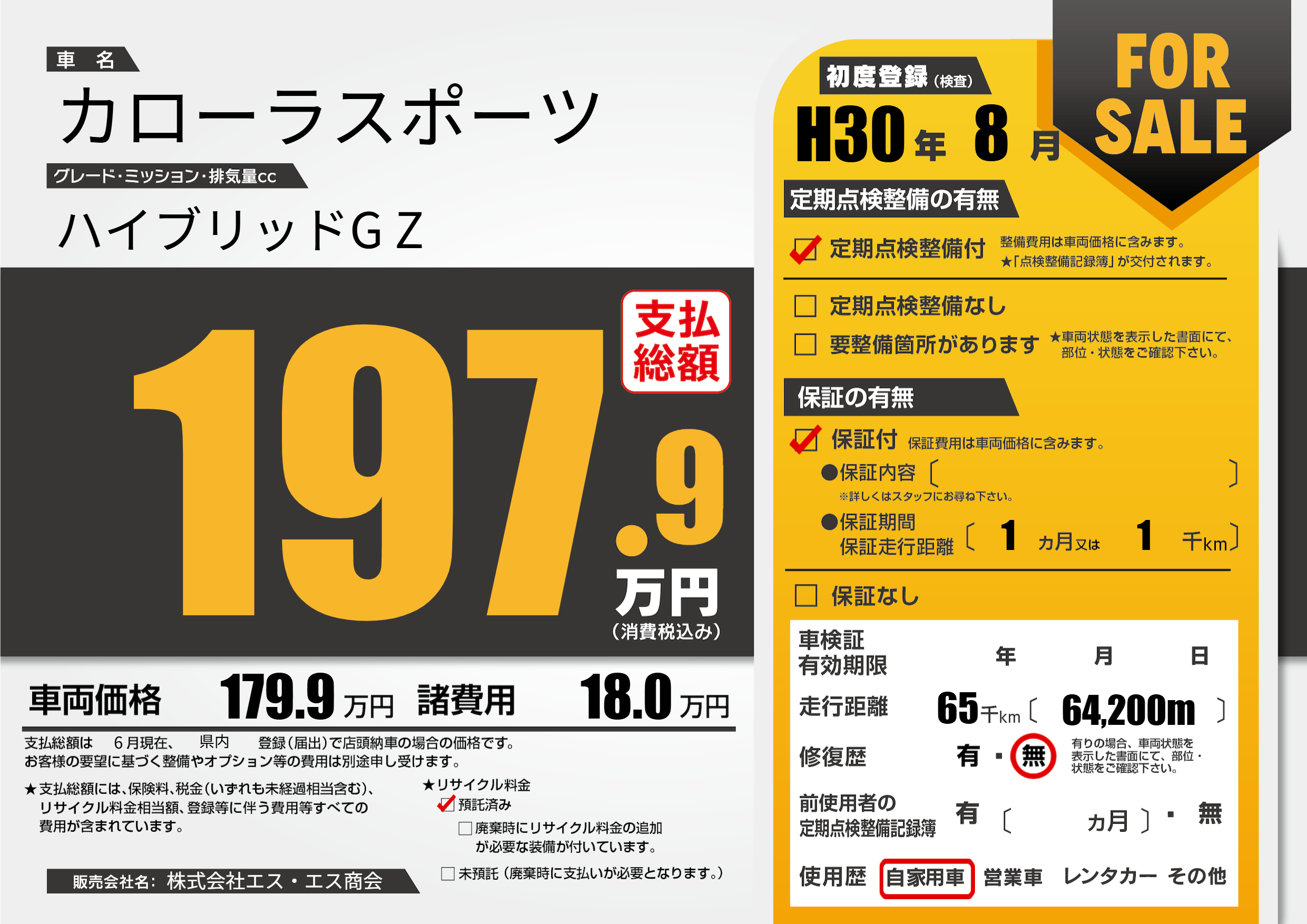 | 車名 | カローラスポーツ | グレード ミッション 排気量 |